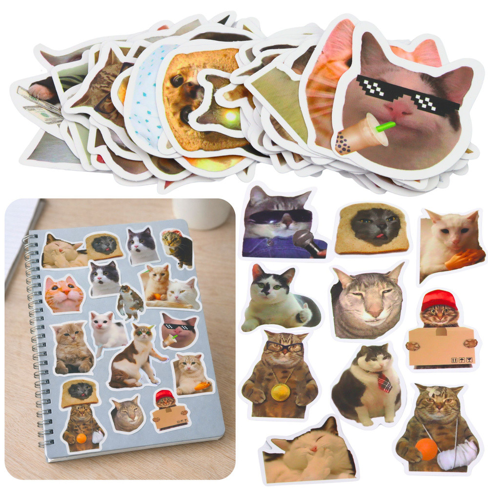 Macskák Matricák Szett Mémek Dekoratív Különböző Motívumok 50 db 7-8 cm