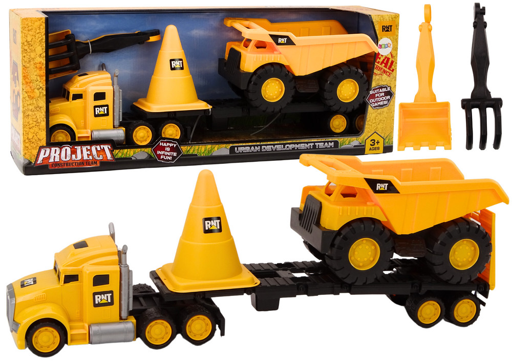 Építőgép Teherautó Billencsautó Mozgatható Sárga Egy építőjáték készlet igazi kincs minden kis építő számára! A készlet tartalmaz egy sárga teherautót vontatóval, egy dömpert, egy nagy sárga bóját és egy vödröt gereblyével, amelyek órákig tartó végtelen szórakozást nyújtanak otthon és a szabadban egyaránt. Egy teherautó vontatóval segít a dömper szállításában. A gereblye és a kanál ideális eszközök ásáshoz és homokszerkezetek kialakításához, míg egy oszlop segít a terület biztosításában. A dömper lehetővé teszi különféle tárgyak szállítását és kirakodását. Masszív szerkezetének köszönhetően rendkívül tartós és ellenálló minden körülménnyel szemben, garantálva a hosszú távú szórakozást. A játékok kiváló minőségű műanyagból készültek, amely biztonságos a gyermekek számára és könnyen tisztítható. Ennek köszönhetően a szülők biztosak lehetnek abban, hogy gyermekeik biztonságosan játszanak, ugyanakkor élvezhetik a játékok tisztán tartásának egyszerűségét is. Ez a játékkészlet nemcsak gyermeke kreativitását és fantáziáját fejleszti, hanem alapvető építési és mechanikai fogalmakat is megtanít nekik. Az építési, szállítási és különféle szerkezetek létrehozásának lehetőségének köszönhetően a gyerekek fejleszthetik kézügyességüket és szórakoztató és interaktív módon ismerkedhetnek meg az építkezés lenyűgöző világával. Dömper méretei: 24cm x 14cm x 13,5cm A teherautó méretei: 62cm x 13cm x 11,5cm A csomag mérete: 65cm x 24,5cm x 14cm CE tanúsítvánnyal rendelkezik és megfelel az EN71 szabványnak. 3 év feletti gyermekek számára készült.