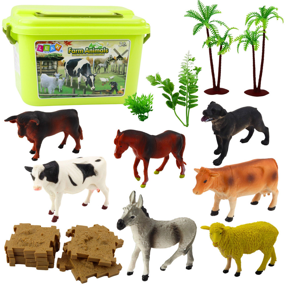 FARMFIGURA KÉSZLET + 57 EL. DOBOZ A Farmfigurák készlet ideális ajánlat a természet legfiatalabb szerelmeseinek. Ez a gazdagon felszerelt készlet valósághűen reprodukált állatfigurákat, a környezet különböző elemeit, például fákat, növényeket, talajként szolgáló kirakókat és egy kerítést tartalmaz a karámhoz, és mindezt egy praktikus, fogantyúval ellátott dobozban csomagolták, ami megkönnyíti a tárolást és a szállítást. A részletgazdagságnak és a magas minőségű kidolgozásnak köszönhetően a játék sok órányi kreatív és fejlesztő szórakozást nyújt a gyermekeknek. A készlet tökéletesen funkcionál oktatási eszközként - játék közben a gyerekek megismerhetik és megkülönböztethetik az állatfajokat, megtanulhatják a nevüket, gyakorolhatják a logikus gondolkodást és a térbeli tervezést, saját miniatűr farmot építve. A figurák és a környezet elemei támogatják a képzelet, a kreativitás és a kézügyesség fejlődését, és a velük való játék egyedül és társakkal csoportban is történhet, ami a szociális készségek fejlődését is támogatja. A kompakt, fogantyús tok segít rendben tartani a dolgokat, masszív felépítésének köszönhetően pedig a készlet könnyen magával vihető nyaralásra, óvodába vagy nagyszülőlátogatásra. Nagyszerű ajándékötlet, amely minden kis állat- és természetrajongót elragadtat, a szórakozást a tanulással ötvözve. SPECIFIKÁCIÓ: Tok méretei: 28 x 20 x 18 cm Elemek száma: 57 Anyag: műanyag KÉSZLET TARTALMA: Állatfigurák - 12 db. Fafigurák - 2 db. Kirakós játékok - 16 db. (földutánzat tollhoz) Kerítés - 12 elem Növényfigurák - 14 db. Füllel ellátott tok