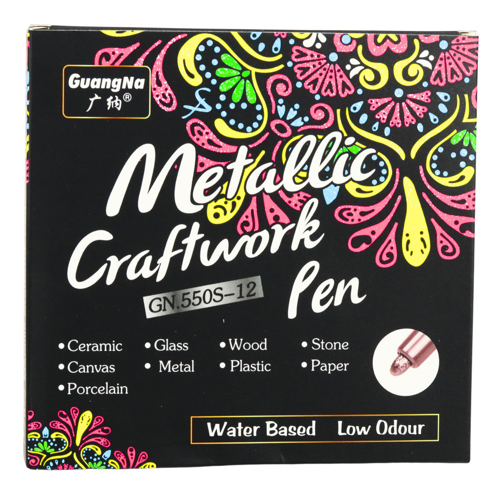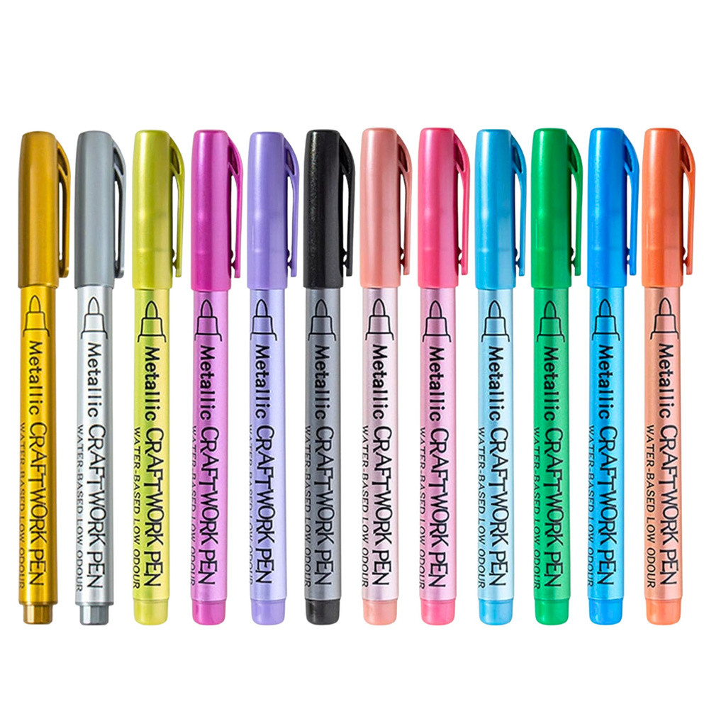 Metálfényű nejlon dekoratív színes filctoll készlet, 12 db.