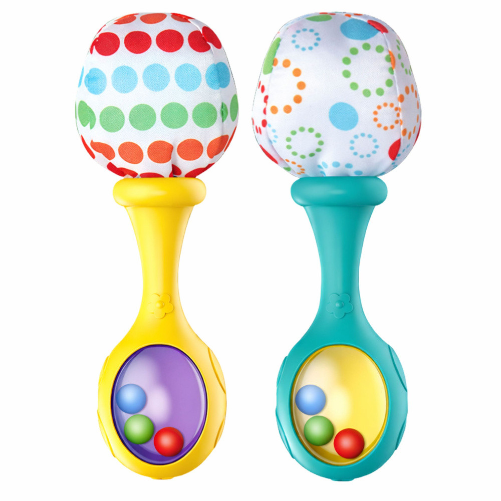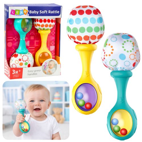Csörgőkészlet puha golyómintákkal, sárga-zöld színben, 2 db
