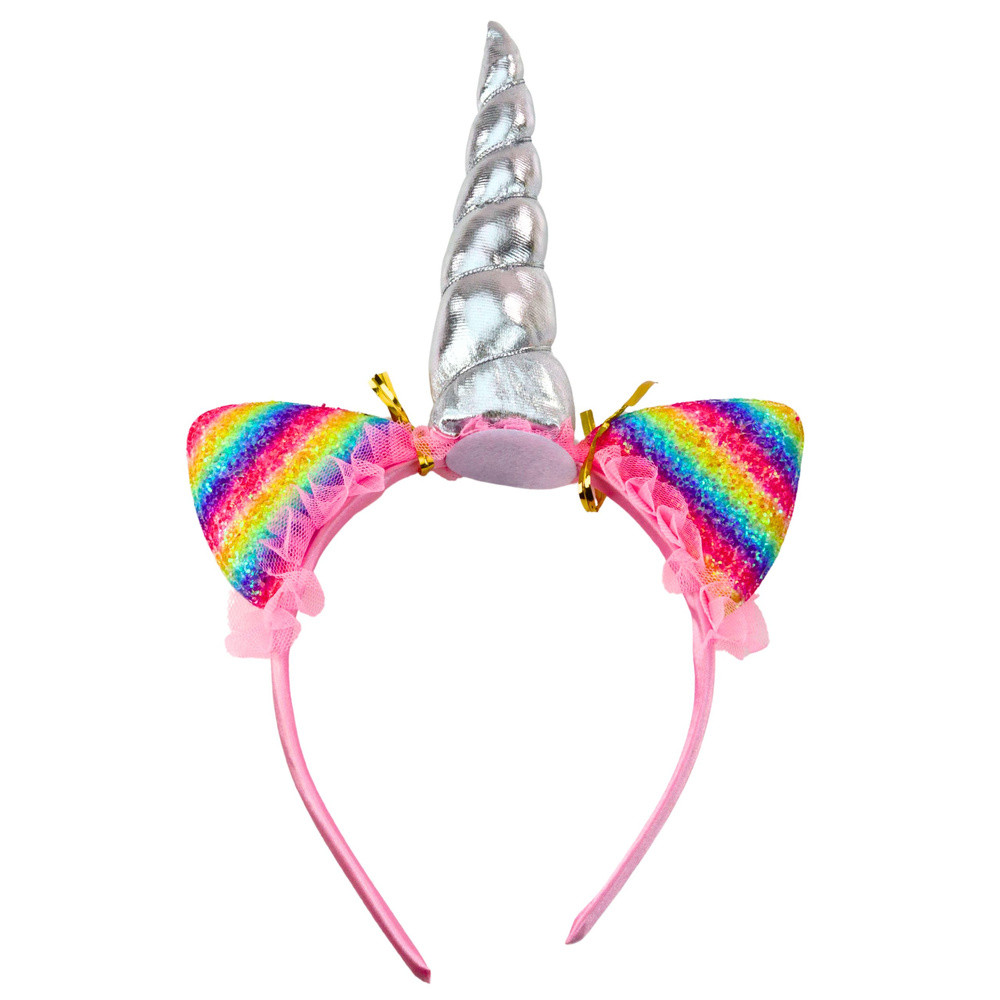 Unikornis fejpánt, fülek, szarv, nyaklánc, színes szett