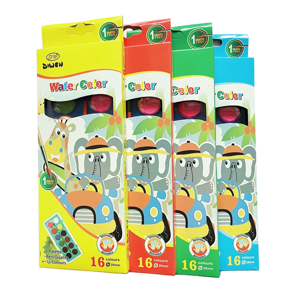 Akvarell iskolai festékek készlete, 16 színű ecset