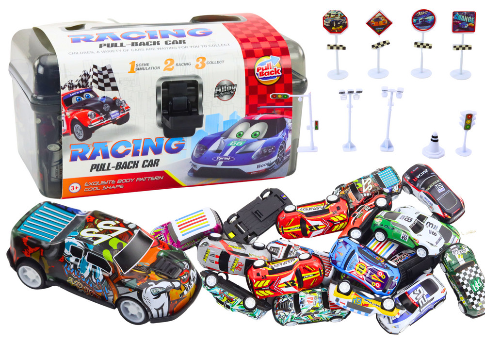 Rugókészlet bőröndben, 25 db. Közlekedési táblák, autókFedezze fel az autózás lenyűgöző világát praktikus bőröndbe csomagolt rugókészletünkkel, amely akár 25 darab egyedi járművet is tartalmaz!Ez egy ideális ajánlat a sokszínűséget és a minőséget értékelő kis és nagy autórajongók számára.A precíz részleteknek köszönhetően minden jármű egy igazi autó miniatűr változatának tűnik, ami nemcsak a gyerekeket, hanem a felnőtt gyűjtőket is el fogja kápráztatni.A bőrönd, amelyben a rugók találhatók, nemcsak stílusos, hanem funkcionális is. Megkönnyíti a teljes gyűjtemény tárolását és szállítását, valamint lehetővé teszi, hogy a rugókat kényelmesen magaddal vihesd utazáskor vagy barátokkal való találkozáskor. A masszív csat és az ergonomikus fogantyú biztosítja a kényelmet és a biztonságos használatot.A készlet közlekedési táblákat és egy táblát is tartalmaz.Az autó méretei:6cm x 3cm x 3cmA csomag mérete:23cm x 14cm x 11cmCE tanúsítvánnyal rendelkezik és megfelel az EN71 szabványnak. 3 év feletti gyermekek számára készült.