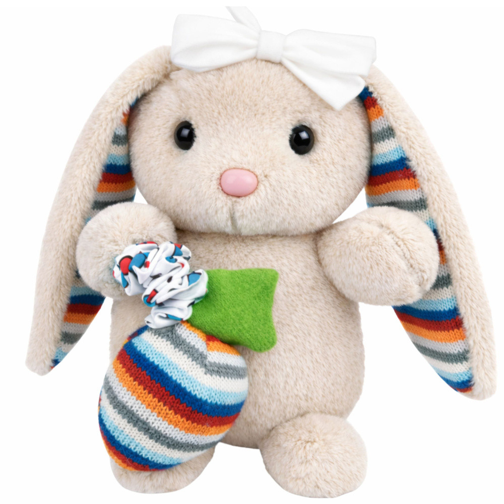 Puha plüss nyuszi zenélő doboz ölelnivaló játék kabalafigura bézs