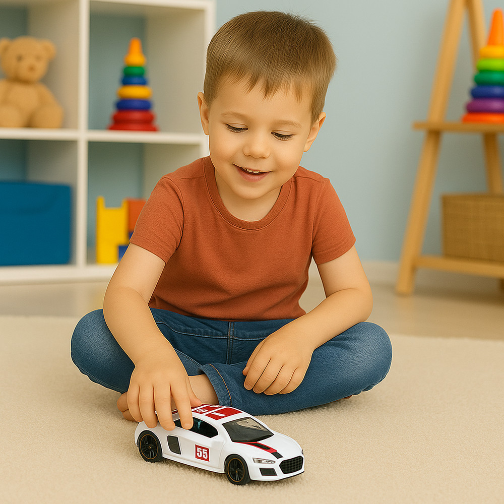 FÉM HÁTRAHÚZHATÓS SPORTAUTÓ NYITHATÓ AJTÓKKAL, 1:43 LÉPTÉK, 10,5 CMEz az 1:43 méretarányú fém sportautó egy realisztikusan reprodukált modell, amelyet a járművekkel játszó gyerekek és az esztétikumot értékelő gyűjtők számára készítettek. A játék kiváló minőségű fémből készült, ami tartósságot és vonzó megjelenést biztosít, amely egy igazi versenyautóra emlékeztet. A fehér karosszéria piros díszítéssel dinamikus karaktert kölcsönöz a modellnek, a nyitható ajtók pedig tovább fokozzák a játék realizmusát, és lehetővé teszik a gyerekek számára, hogy különböző jeleneteket játsszanak el.Az autó hátrahúzós motorral rendelkezik, így egyszerűen húzd hátra, hogy magától előre haladjon. Kompakt méretének köszönhetően tökéletesen illeszkedik a gyermek kezébe, a tartós konstrukció pedig kényelmet és biztonságot nyújt. Tökéletes ajándék a fiatal autórajongóknak, és nagyszerű kiegészítője egy nagyobb modellgyűjteménynek.A többdarabos csomag 12 darabot tartalmaz. Külön kapható.SPECIFIKÁCIÓK:Autó méretei: 10,5 cm x 4,5 cm x 3,5 cmMéretarány: 1:43Anyag: fém + műanyagMeghajtás: visszahúzhatóJellemzők: nyitható ajtókKészítés: öntött modellSzín: fehér, piros elemekkelRendeltetett felhasználás: szórakozás, gyűjtésAlkalmazás: vezetés sík felületenTovábbi jellemzők: realisztikus részletek, tartós konstrukcióCsomag méretei: 35,5 x 27,5 x 4 cmKÉSZLET TARTALMA:1:43 fém sportautó
