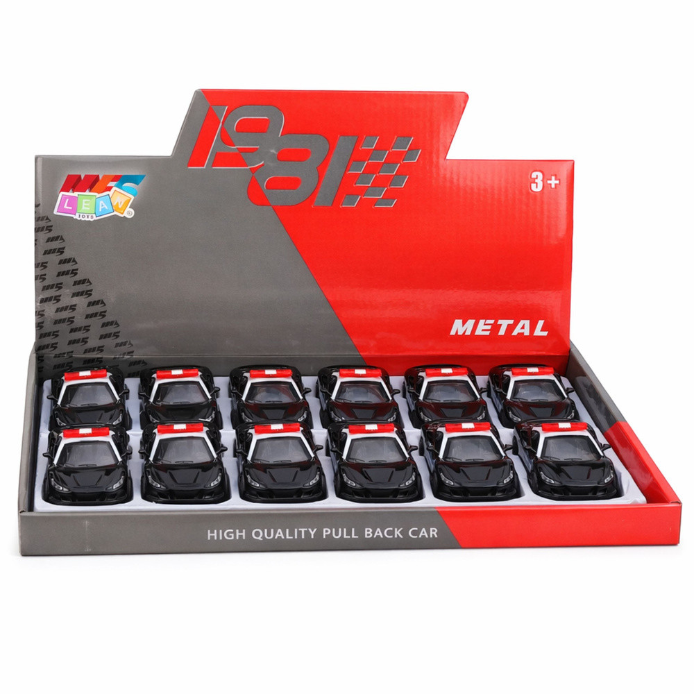 Sports Car Police Car With Motorized Metal Pull-Back Black 1:43