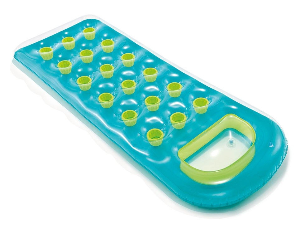 Strandmatrac ablakkal 188 x 71 cm INTEX 59895 Szórakozással teli nyár! ? Az Intex úszómatrac hívogató megjelenésével biztosan sok kikapcsolódást nyújt a víz mellett eltöltött napsütéses napokon. A használat közbeni kényelem maximalizálása érdekében a termék kényelmes, beépített párnával és átlátszó ablakkal van felszerelve. Figyelmeztetés: Csak olyan mélységű vízben használható, ahol a gyermek a lába alatt érzi az alját, és felnőtt felügyelete mellett. Főbb jellemzők: felfújható fejtámla átlátszó ablak tekercs-gerenda kamra kialakítás javítófolt mellékelve Műszaki adatok: Méretek: 188 x 71 cm Anyaga: PVC PVC vastagság: 0,28 mm Súly: 1 kg Légkamrák: 2