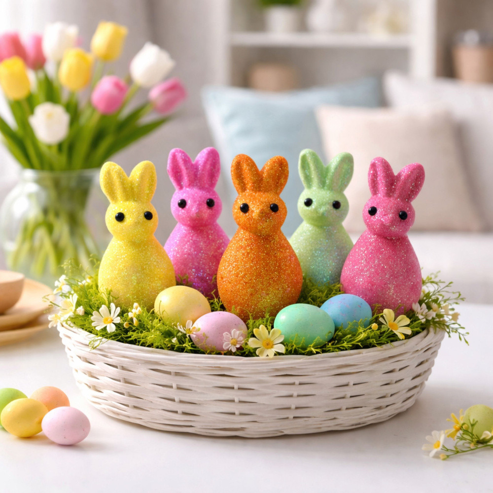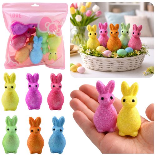 Styrofoam húsvéti nyuszik Glitter dekoratív színes 6db
