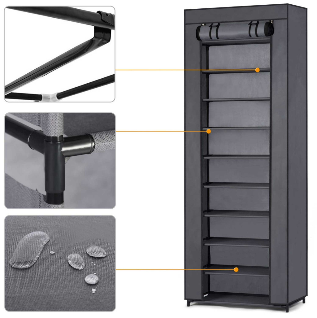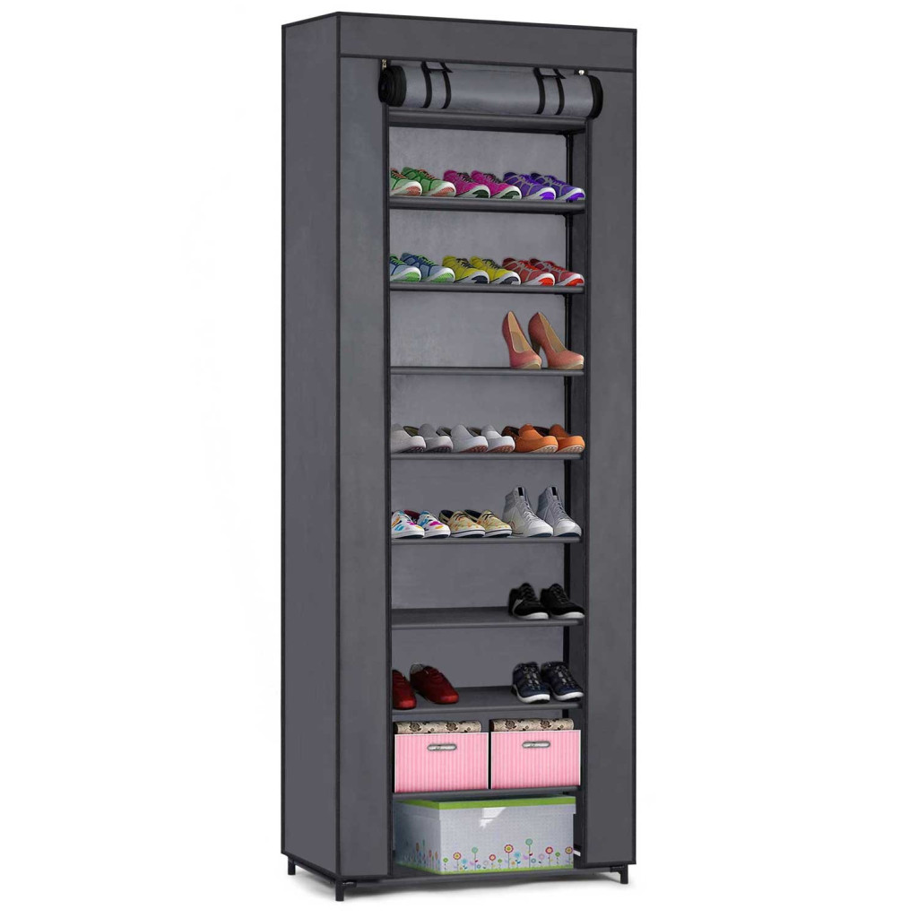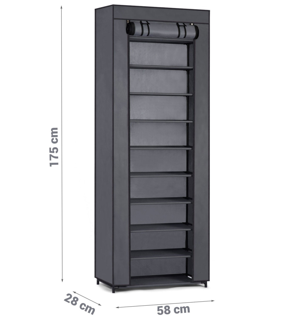 Textil cipőszekrény , grafit , 10 polc , 28 x 58 x 175 cm - Massido