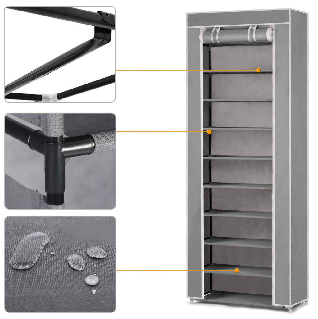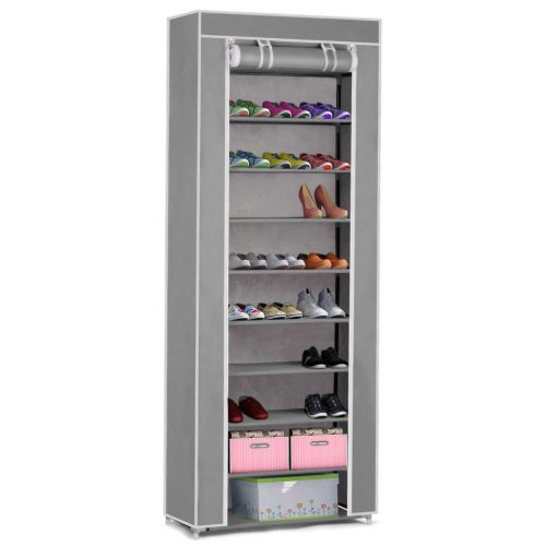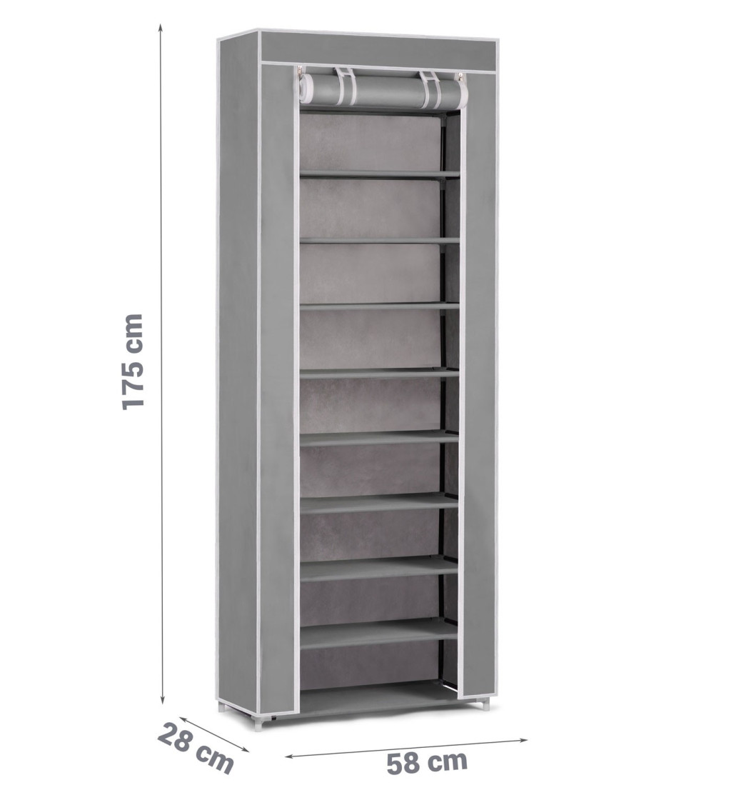 Textil cipőszekrény , szürke , 10 polc , 28 x 58 x 175 cm - Massido