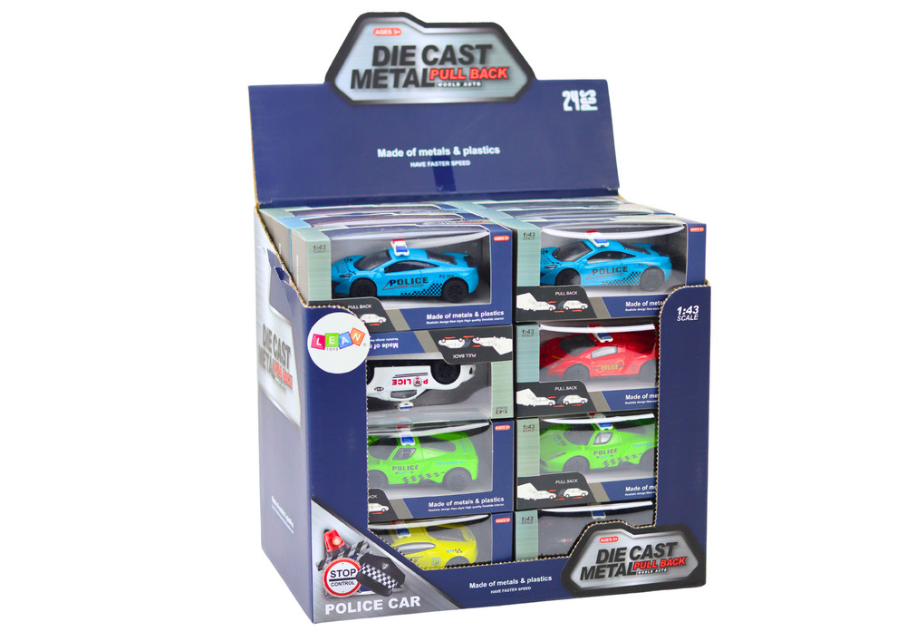 Játékautó Rendőrautó rugós 1:43 Fém meghajtás Gumikerekek Az 1:43 méretarányú fém rendőrautó nem csupán játék, hanem egy igazi miniatűr, amely precíz kidolgozásával és szilárdságával lenyűgöző. Kiváló minőségű fémből készült, rendkívül tartós és sérülésálló, így tökéletes az intenzív játékhoz. Realisztikus kialakítása egy igazi autó részleteit reprodukálja, a karosszéria formájától kezdve a precízen reprodukált részletekig, mint például a fényszórók, tükrök és a belső tér. Nemcsak játék, hanem gyűjtői darab is, amely minden autórajongónak tetszeni fog. Az autó meghajtással van felszerelve, amely lehetővé teszi az önálló mozgást. Tolásra dinamikus lendülettel halad előre, ami interaktivitást és realizmust kölcsönöz játék közben. A könnyen használható meghajtási mechanizmus azt jelenti, hogy még a legkisebb gyermekek is hiteles élményben részesülhetnek a jármű irányítása során. A gyűjtőcsomag 24 darabot tartalmaz. A játékok külön kaphatók. A szín véletlenszerűen kerül kiválasztásra. Autó méretei: 10cm x 4cm x 3cm A csomag mérete: 13,5cm x 6cm x 5,5cm A gyűjtőcsomagolás méretei: 28cm x 26cm x 18cm CE tanúsítvánnyal rendelkezik és megfelel az EN71 szabványnak. 3 év feletti gyermekek számára készült.