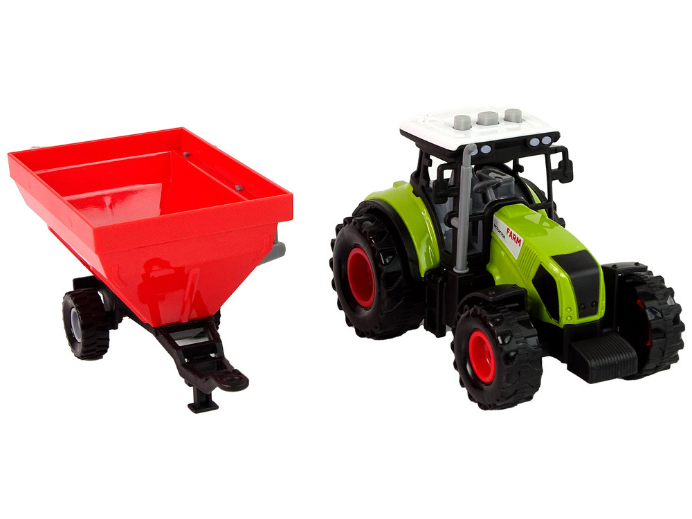 Levehető traktoros gabonaszállító pótkocsi hangja zöld Mit gondolsz, élvezhetné gyermeked a farmer játékot? Szerintünk igen! Az otthoni játék során a kicsi könnyen megérti, milyen a sok felelősséggel teli farmélet. Sok feladatból áll, ezért érdemes egy traktort speciális pótkocsival a gyűjteményedben tartani. Ez a játék nagyszerű módja a gyermekek kreativitásának és szenvedélyének fejlesztésére, és lehetővé teszi számukra, hogy megismerkedjenek a vidéki élettel. A jármű hátulján lévő pótkocsi levehető. Két kerékre van szerelve, amelyek tökéletesen megbirkóznak a váratlan manőverekkel. Gabona szállítására tervezték. A traktor valódi vezetési és motorhangokat ad ki. A gomb a traktorfülke tetején található. A hanghatásokat első lámpák kísérik, amelyek jelzik a mezőgazdasági jármű mozgását. Ideje indulni a földmunkára! A szett méretei: - traktor: 15 cm x 9 cm x 10 cm - billenőplató: 15 cm x 8 cm x 8 cm A becsomagolt játék méretei: 35 cm x 11 cm x 14 cm A játék 3 év feletti gyermekek számára készült és CE minősítéssel rendelkezik. Esztétikus kartondobozban, nyitott vitrinben érkezik. A játékhoz három AG13 elem tartozik.