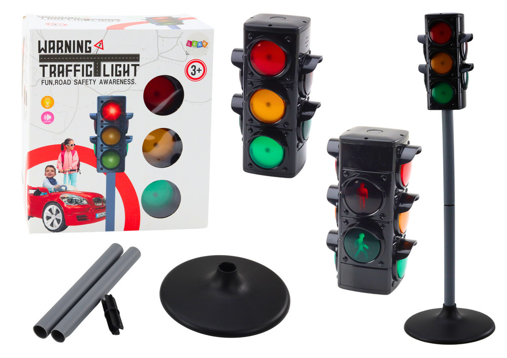 Közlekedési lámpa oktatójátékhoz Fényhang Az oktatójátékhoz használt közlekedési lámpa egy interaktív eszköz, amely segít a gyerekeknek megtanulni a közlekedési szabályokat. A valósághű hang- és fényhatásoknak köszönhetően megtanítja a piros, sárga és zöld jelzések jelentését, támogatva a biztonságos közlekedési viselkedés elsajátítását. A gyerekek különféle játékhelyzeteket hozhatnak létre, autósok, gyalogosok vagy rendőrök szerepét vállalva. A közlekedési lámpával való játék fejleszti a képzeletet és kialakítja a biztonságos közlekedési szokásokat. A masszív konstrukció tartósságot biztosít, a lámpa pedig otthon, az iskolában vagy a játszótéren is jól használható oktató- és játékeszközként. Tökéletes ajándék minden gyermek számára, aki a biztonsági szabályokat tanulja. A közlekedési lámpa 3 db AAA elemmel működik, amelyek nem részei a készletnek. Közlekedési lámpa méretei: 70cm x 21,5cm Csomagolás méretei: 25cm x 22,5cm x 15,5cm CE tanúsítvánnyal rendelkezik, és megfelel az EN71 szabványnak is. 3 év feletti gyermekek számára készült.