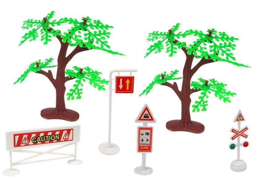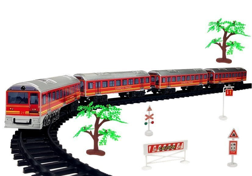 A 33 darabos elemes vonatpálya egy nagyszerű játék, amely órákig tartó szórakozást nyújt és leköti a gyerekeket. A különféle játékvonatok építése felébreszti gyermekedben a vágyat, hogy megismerkedjen a mérnöki tudományok csodáival és a mozgó tárgyak létrehozásának varázsával. A képzelet és a kézügyesség nagymértékben fejlődik gyermekedben. Mosoly fog megjelenni a kis vonatrajongók arcán. A vonatépítő készlet fantasztikus választékot tartalmaz sínekből, építőelemekből és kiegészítőkből. Tartalmaznak egyenes és ívelt síneket, fákat, útjelző táblákat. A pálya különböző változatait építheted meg - 70 cm, 88 cm, 111 cm, a leghosszabb pedig akár 153 cm hosszú is lehet! A vonat egyedülálló, mert elemes, így a gyermek nemcsak saját vonatot építhet, hanem hang- és fényeffektusokat is élvezhet. A valósághű vonathangok, útjelző táblák és az utat mutató fények ösztönzik a fantáziadús játékot. Számos apró és egyszerű részlet teszi egyedivé a vonatot. A készlet 33 részből áll: - darabok a pálya megépítéséhez - útjelző táblák, amelyek a vonatútvonal mentén elhelyezhetők - vonat - 2 vagon  Pálya hossza: a leghosszabb kb. 153 cm  Egy vonat méretei: 19 cm x 4 cm x 6 cm A csomag méretei: 59 cm x 39 cm x 7 cm  A készlet három darab AA 1,5 V-os elemmel működik, amelyek nem részei a csomagnak. A vonat 3 év feletti gyermekek számára készült. A játék CE tanúsítvánnyal rendelkezik és megfelel az EN 71 szabványnak. Kartondobozba van csomagolva, így ajándéknak is alkalmas gyermekek számára.