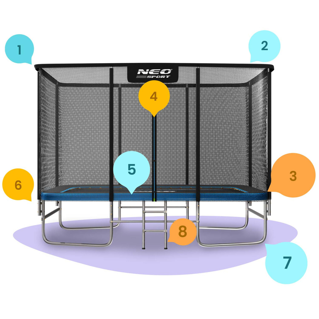 Neo-Sport téglalap alakú kerti trambulin 12x8 láb / 366x244 cm kültéri hálóval és létrával