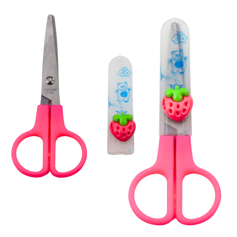 Kétkezes iskolai olló biztonsági sapkával Mix 12cm
