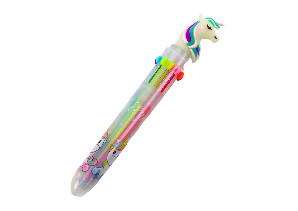 Unicorn Toll Többszínű Automatikus 10 Szín Mix Ez a funkcionális toll ötvözi a szórakozást és a praktikumot, akár 10 színt kínálva egyetlen íróeszközben. A toll egy aranyos unikornis motívummal díszített, amely biztosan felkelti a gyerekek figyelmét, és izgalmasabbá teszi a mindennapi írást. Több tintával van felszerelve, így könnyen válthat színeket anélkül, hogy tollat ​​kellene cserélnie. Minden szín tökéletes a különféle alkalmazásokhoz, a rajzolástól az írásig. A szín váltásához egyszerűen nyomja meg az unikornis figurát, így a színváltás gyors és szórakoztató. Ez az intuitív megoldás megkönnyíti a gyerekek számára a megfelelő szín kiválasztását minden egyes munkához. Ez a toll nagyszerű módja annak, hogy felkeltsük az érdeklődést az írás és a rajzolás iránt. A színes tinta és az interaktív unikornis motívum kombinációjának köszönhetően a toll vonzó és praktikus eszközzé válik a tanuláshoz és a játékhoz. Az ár egy tollra vonatkozik, a gyűjtőcsomag 36 darabot tartalmaz. A színt véletlenszerűen választjuk ki. CE tanúsítvánnyal rendelkezik. 3 év feletti gyermekek számára készült.