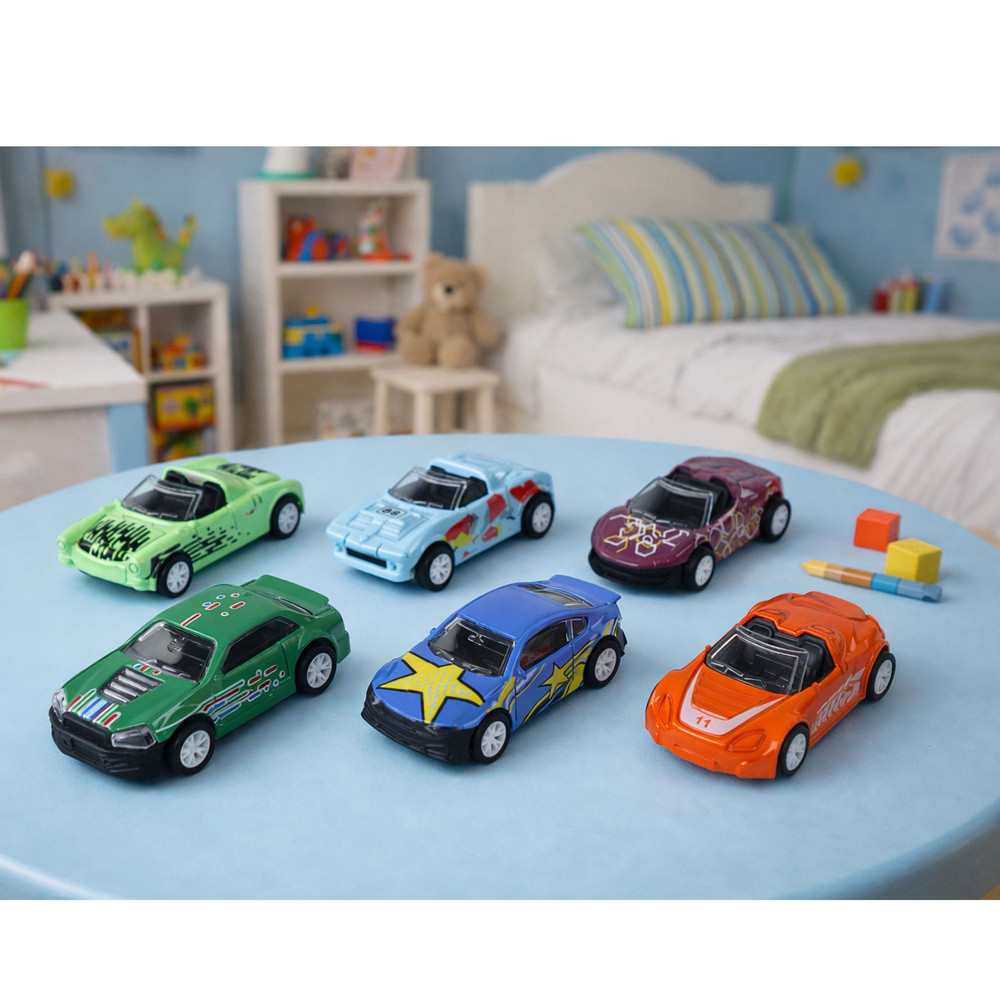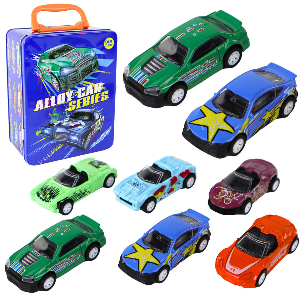 Súrlódós meghajtású járműkészlet fémdobozban 1:64   Az 1:64-es autókészlet rendkívül vonzó játék a kis autórajongók számára. 6 különböző formájú és színes autót tartalmaz, amelyek mindegyike egyedi megjelenésű, és kék, zöld és narancssárga árnyalatokban készült. Ez a tökéletes megoldás azoknak a gyerekeknek, akik szeretnek különféle formájú és stílusú járművekkel játszani. Minden autó súrlódós meghajtással van felszerelve, ami azt jelenti, hogy egyszerűen hátra kell húzni a járművet, majd el kell engedni, hogy nagy sebességgel előre haladjon. Ez sok örömet és szórakozást nyújt, amikor a gyerekek a padlón vagy az asztalon versenyeznek velük. A fém bőrönd, amelyben az autók találhatók, igazi kincs a kis gyűjtők számára. A bőrönd 18 dobozzal rendelkezik, és kedvenc járműveidet 12-be teheted. Minden doboz téglalap alakú, így az autók biztonságosan elhelyezkednek, és nem sérülnek tárolás vagy szállítás közben. A bőrönd elegáns sötétkék színű, sportkocsi motívummal, ami stílusos megjelenést kölcsönöz neki. A fém csat biztosítja, hogy a bőrönd tartalma biztonságosan zárva maradjon, az összecsukható szállítófogantyú pedig megkönnyíti a készlet bárhová történő szállítását. Ez az autókészlet nemcsak sok szórakozást és örömet nyújt a gyerekeknek a játékok során, hanem segít fejleszteni motoros készségeiket és képzelőerejüket is. Tökéletes ajándék a kis autórajongóknak, akik kedvenc járműveikkel saját versenyeket és kalandokat hozhatnak létre.   A készlet tartalma: - 6 db jármű 1:64 méretarányban - fém bőrönd - eredeti csomagolás   Jármű méretei: ~7 cm x 3,5 cm   Bőrönd méretei: 20 cm x 15 cm x 9 cm   CE tanúsítvánnyal rendelkezik és megfelel az EN71 szabványnak. A játék 3 év feletti gyermekek számára készült.