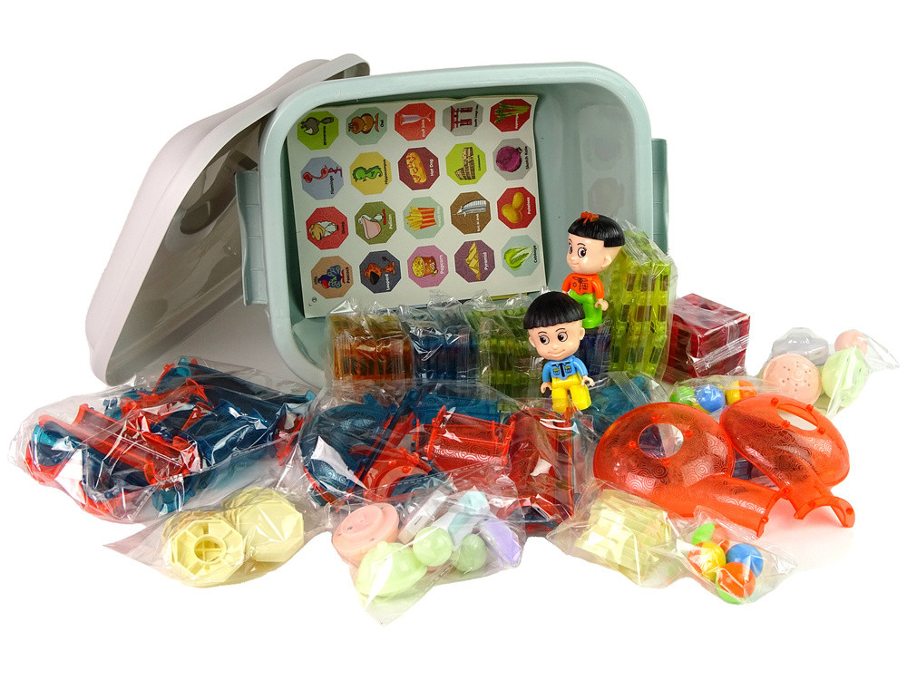 Világító Csúszda Labdákhoz Mágneses Kockák Dobozban 150 Elemes A világító labdacsúszda egy izgalmas játék gyerekeknek, amely órákig tartó szórakozást és szórakozást nyújt. Kétféle játékot ötvöz - mágneses kockákat és egy labdacsúszdát. A játék oktató funkcióval is rendelkezik. Lehetővé teszi a kézügyesség fejlesztését a pálya építése közben, a kreativitást, és ösztönzi a kísérletezést és újabb és újabb épületek és szerkezetek létrehozását. A csúszda több összekapcsolt mágneses elemből áll, amelyeken a világító golyók csúszkálnak. A pálya egyes elemeiben LED-ek, valamint kis reflektorok találhatók, amelyek a pálya oldalára helyezhetők a megvilágításhoz. A világítás még több szórakozást és látványosságot biztosít. A készlet tartalmaz egy használati útmutatót, amely példákat mutat a konstrukcióra. Építs egy pályát rámpákkal, hurkokkal és akadályokkal, amelyeket a gyermek szabadon kombinálhat és elrendezhet. Minden végén lévő kockán mágnesek vagy patentok találhatók, amelyek vonzzák a tekintetet, és lehetővé teszik háromdimenziós építmények létrehozását, amelyeken a kis világító golyó csúszkálhat. A készlet 150 darabot tartalmaz. A patentdoboz rendben tartja a dolgokat, és az összes kockát egy helyen tartja. A készlet elemei: - doboz - világító golyók, világító darabok - normál golyók - mágneses kockák - matricák - minta útmutató - 2 db figura a golyók átmérője: 2,5 cm A figura méretei: 10 cm x 5 cm x 5 cm A csomag méretei: 38 cm x 24 cm x 25 cm A játékban található összes elem gyermekbiztos, tanúsított anyagokból készült. A készlet CE-minősítéssel rendelkezik, így ideális ajándék gyermekeknek - különösen 3 év felettieknek. Érdemes megjegyezni, hogy a csomagolás sok apró alkatrészt tartalmaz. 1,5 V-os LR1130 és LR41 elemeket tartalmaz.