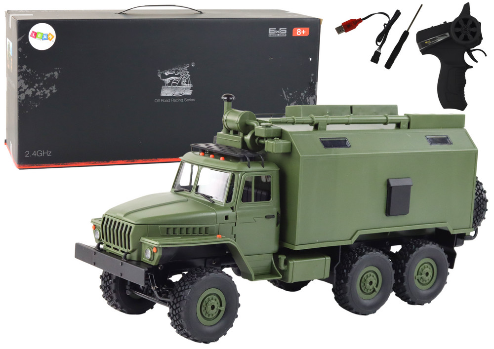 WPL B-36 TÁVIRÁNYÍTÁSÚ KATONAI TEHERAUTÓ 1:16 A WPL B-36 távirányítású katonai teherautó kiváló modell a terepjárók és a katonai rajongók számára. 1:16 méretarányban készült, realisztikus kialakításával és fejlett funkcióival tűnik ki, amelyek lehetővé teszik a nehéz terep leküzdését és a dinamikus vezetést minden körülmények között. A modell összkerékhajtással (4WD) van felszerelve, amely kiváló tapadást és stabilitást garantál, még egyenetlen felületen is. A gumi terepjáró gumiabroncsok és a teljes felfüggesztés lehetővé teszi az akadályok zökkenőmentes leküzdését, az egyenletes súlyelosztás pedig nagyszerű teljesítményt nyújt mind sík terepen, mind meredek felületeken. A teherautó nyitható kabinajtókkal rendelkezik, amelyek realizmust és interaktivitást kölcsönöznek a játéknak. A modell LED-es fényszórókkal is fel van szerelve, amelyek tökéletesek sötétben való vezetéshez. Ezenkívül a beépített tartók lehetővé teszik a világítás módosítását, így a járművet a saját preferenciáihoz igazíthatja. A távirányítás egy 2,4 GHz-es frekvencián működő adó segítségével történik, amely nagyfokú interferencia-ellenállást és azonnali reagálást biztosít a felhasználói parancsokra. A készlet matricákat is tartalmaz, amelyekkel személyre szabhatod a teherautó megjelenését, még hitelesebb karaktert kölcsönözve neki. Ez kiváló választás a fiatal autórajongók és a katonai járművek rajongóinak, akik távirányítású modellekkel szeretnének kalandot kezdeni. SPECIFIKÁCIÓ: Négykerék-meghajtás (4WD): Kiváló tapadást és stabilitást garantál nehéz terepen Nyitható kabinajtók: Növeli a játék realizmusát, és lehetővé teszi a modellel való interakciót LED fényszórók: A világítás látványos utazást biztosít sötétedés után is 2,4 GHz-es adó: Zavarállóság és pontos járművezérlés A távirányítót két 1,5 V-os AA elem táplálja (nem tartozék). Teherautó méretei: 42 cm x 20 cm x 14,5 cm Csomag méretei: 48 cm x 22,5 cm x 16,5 cm A KÉSZLET TARTALMA: Távirányítású katonai teherautó WPL B-36 Távirányító 7,4 V-os 500 mAh-s akkumulátor USB töltő Személyre szabható matricák