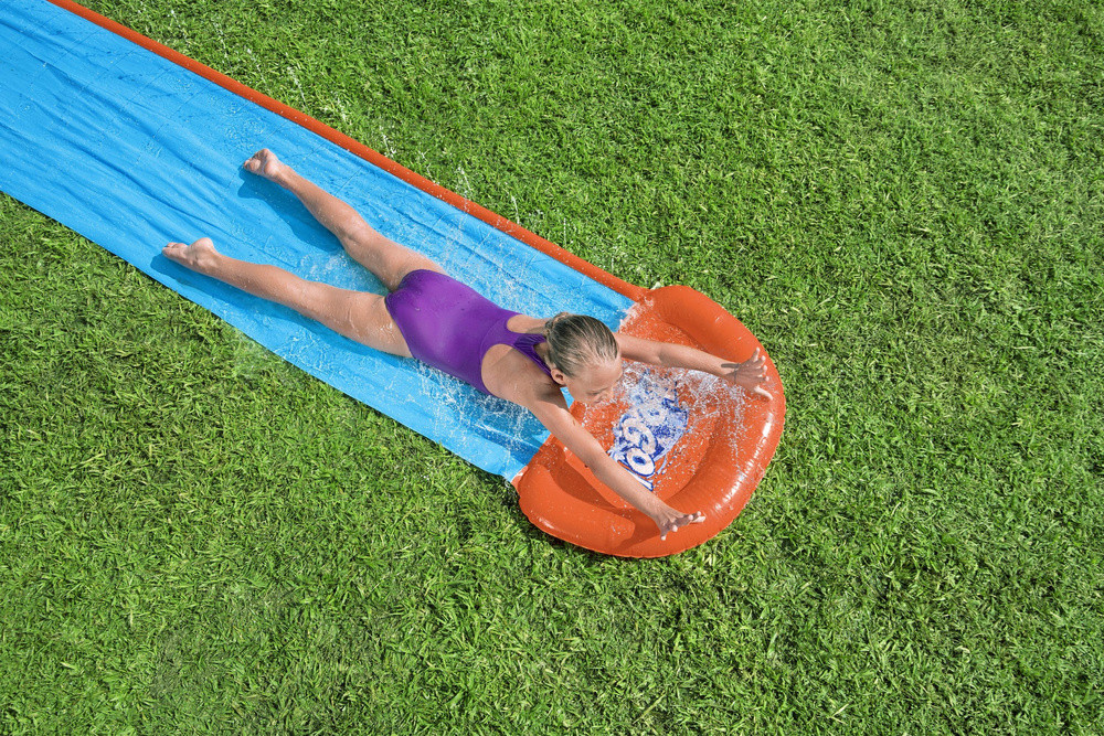 Vízicsúszda 4,88 m Bestway 52477 A 4,88 m-es csúszda tökéletes magányos sebességpróbákhoz vagy barátokkal való felváltva való csúszáshoz. A medence végén található víztölcsérek nagy csobbanással érkeznek a célvonalhoz. A beépített locsolók kifejezetten a hatékonyabb lefedés és a vízeséshatás biztosítására lettek tervezve, így a pálya csúszós marad. A csúszda klasszikus, időtlen szórakozást nyújt a hátsó udvarban minden 3 év feletti gyermek számára. Ideális módja a szabadidő eltöltésének és érdekes szórakozásnak. Egyszerűen hajtsa ki a csúszdát, rögzítse a talajhoz, és csatlakoztasson egy kerti tömlőt. A készletben található speciális biztonsági elemeknek köszönhetően a csúszda nem mozdul el. A készlet tartalma: - csúszda - javítófolt Műszaki adatok: - Csúszdahossz: 4,88 m - Egy személyre - felfújható puha szőnyeg - A víz a medencébe folyik, csobbanást biztosítva a lejtés végén - PVC anyag - beépített locsolók - 3 év feletti gyermekek számára készült A csomag mérete: 30 cm x 30 cm 7 cm