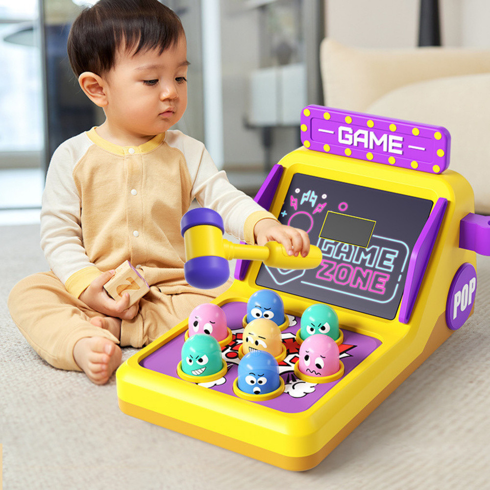 WHACK-A-MOLE JÁTÉKZÓNA KERÉKPÁROS JÁTÉKGÉP KALAPÁCSKAL A színes, automata formájú Whack-a-Mole árkádjáték egy klasszikus játék modern változata, amely vonzó formájával és interaktivitásával biztosan el fogja kápráztatni a gyerekeket. A gyermek feladata, hogy kalapáccsal üsse a lyukakból kiugró színes fejeket - ez kiváló gyakorlat a reflexek, a pontosság és a motoros koordináció fejlesztésére, ugyanakkor nagyszerű lehetőség arra, hogy a gyermekek energiáját kontrollált és örömteli módon szabadítsa fel. A játékgép retró stílusú, nagyméretű, lenyűgöző háza, színes grafikával és részletekkel gazdagítva, vonzza a legkisebbek figyelmét, és egyedi karaktert kölcsönöz a játéknak. A játék digitális kijelzővel rendelkezik, amely pontokat számol, és lehetővé teszi a gyermek számára, hogy játék közben nyomon kövesse az eredményt - ami versenyelemet ad, és motiválja őket az eredményeik javítására. A játék elemmel működik, ami lehetővé teszi vidám hang- és fényeffektusok aktiválását, amelyek továbbá növelik a gyermek bevonódását és változatossá teszik a szórakozást. A készlet tartalmaz egy biztonságos, könnyű kalapácsot, amely tökéletesen illeszkedik a gyermekek kezébe, aminek köszönhetően a móka nemcsak izgalmas, de teljesen biztonságos is. Masszív kialakításának és intenzív, barátságos színeinek köszönhetően a játék nagyszerűen működik mind önálló játék során, mind versenyzés vagy testvérekkel, szülőkkel való együttműködés során. Kiváló ajándékválasztás, amely nemcsak örömet okoz, hanem fejleszti is a gyermeket - hosszú órákon át tartó aktivitást, kézügyességi gyakorlatokat és sok mosolyt kínálva neki minden nap. SPECIFIKÁCIÓ: Típus: árkád játék Funkciók: mozgó elemek ütése A gép méretei: 25 x 18 x 16,5 cm A csomag méretei: 26 x 19,5 x 21 cm Tápegység: 3 x 1,5 V AA (nem tartozék) Anyag: műanyag Alkalmazás: koordináció, reflexek és kézügyesség fejlesztése A SZETT TARTALMA: 1 x Vakondütő játékzóna 1 x biztonsági kalapács 1 x csomag