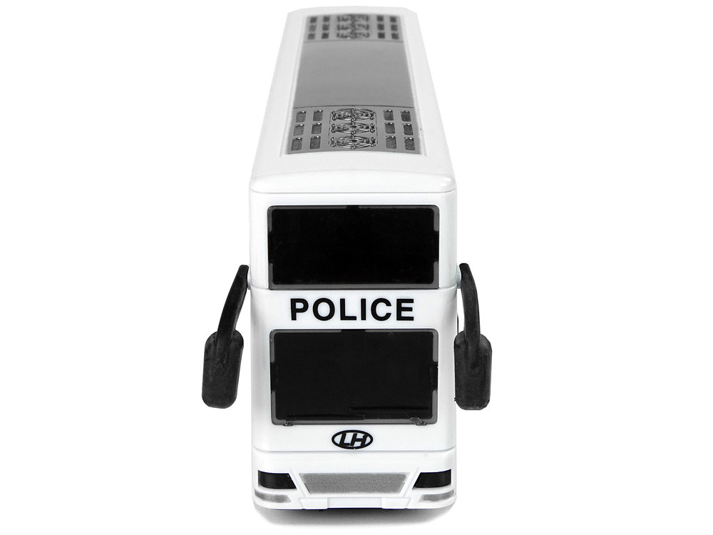Fehér emeletes rendőrbusz lehúzó hanggal