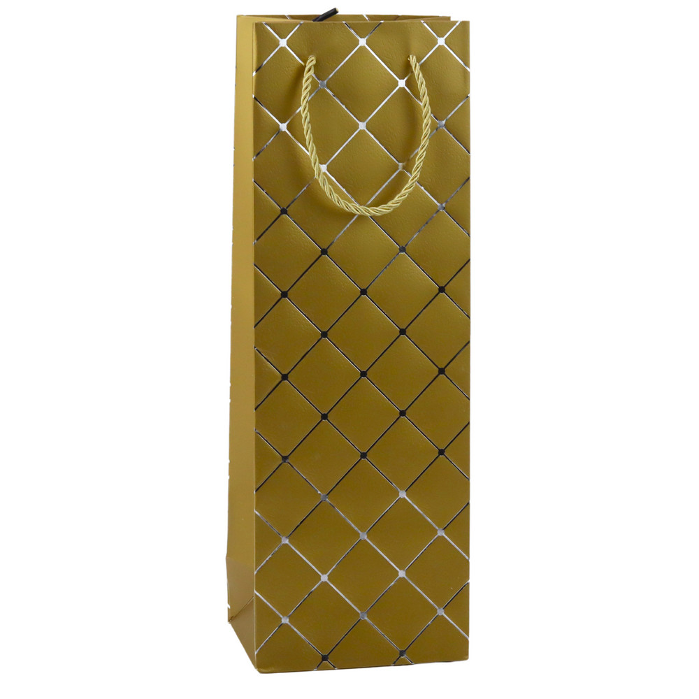 AJÁNDÉKTASAK ÜVEGEKHEZ ARANY EZÜST PIROS FEKETE Egy elegáns ajándéktasak palackokhoz remek választás bármilyen alkalomra. Kiváló minőségű papírból készült, a táskát modern és stílusos ezüst rácsos minta jellemzi, amely egyedi eleganciát kölcsönöz neki. A fémes csillogásnak és a geometrikus motívumnak köszönhetően a táska rendkívül lenyűgöző és elegáns megjelenésű. A táska színében illeszkedő szövetfonatú fogantyúkkal rendelkezik, amelyek garantálják az egységes és esztétikus megjelenést. A fogantyúk kényelmesek és tartósak, ami biztosítja a palack biztonságos hordozását. 35 x 12 x 9 cm-es méreteinek köszönhetően a táska tökéletesen elfér egy szabványos borosüveg, pezsgős vagy más alkoholos üveg, valamint egy üvegben lévő házi lekvár. Négy elegáns színben kapható: arany, fekete, ezüst és piros, így az alkalomhoz és a címzett preferenciáihoz igazíthatja a táskát. Ez a tökéletes megoldás születésnapra, évfordulóra, karácsonyra vagy névnapra. Időtlen eleganciájának és modern dizájnjának köszönhetően a táska mindenkit elvarázsol. SPECIFIKÁCIÓ: Típus: Üveges ajándéktasak Motívum: Ezüst rács Színek: Arany, fekete, ezüst, piros Táska méretei: 35 x 12 x 9 cm Anyag: Tartós papír Fogantyúk: Szövet, a táska színében Célja: Bor, pezsgő, egyéb alkoholos italok, lekvárok üvegpalackokban Stílus: Modern, elegáns A SZETT TARTALMA: 1 üveges ajándéktasak