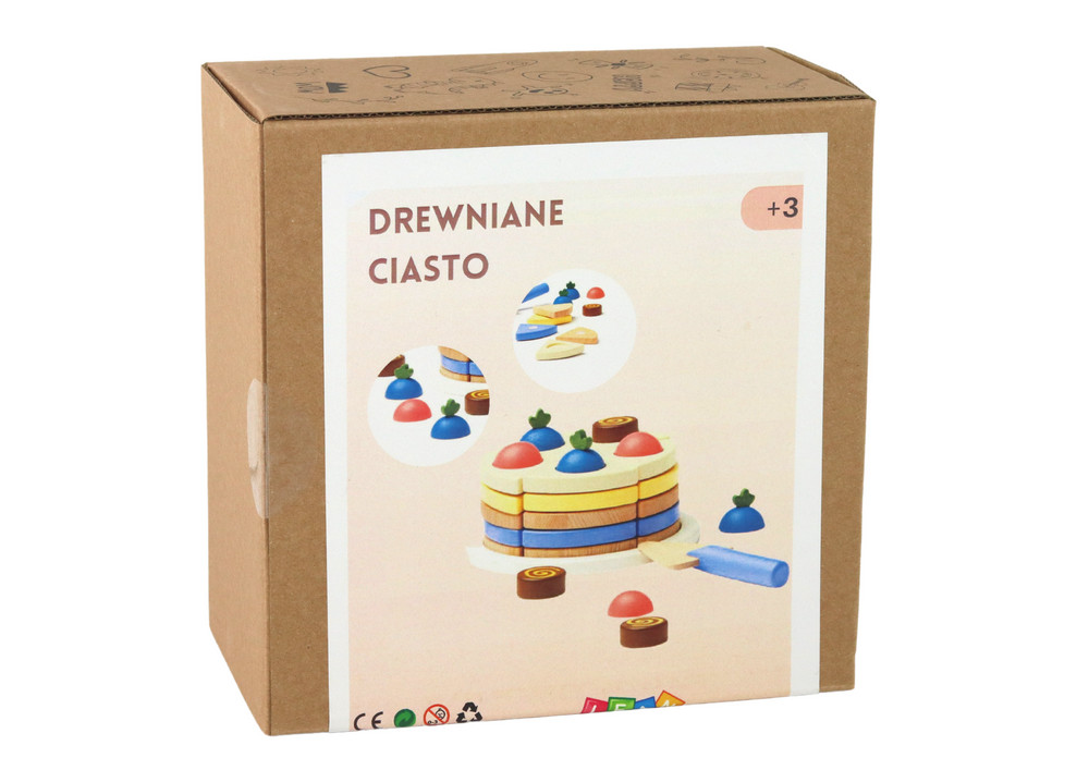 8 darabos fa tortadarabok. A teljes torta darabokra van vágva, mindegyik tépőzárral van ellátva. Ez az innovatív megoldás lehetővé teszi a darabok tetszőleges módon történő kombinálását, így a gyerekek szabadon alkothatnak egyedi kombinációkat. A torta különböző színű darabokból áll, ami vizuálisan vonzóvá teszi a készletet. A gyerekek gyakorolhatják a színek felismerését és fejleszthetik fantáziájukat a torta tetszőleges módon történő elrendezgetésével. A készlet tartalmaz egy tálcát, amelyre az egész tortát helyezhetjük. Ez nemcsak realizmust ad a játéknak, hanem segít a rend fenntartásában is játék közben. A móka még realisztikusabbá tétele érdekében a készlet tartalmaz egy tortalapátot is. A gyerekek úgy tehetnek, mintha tortadarabokat vágnának, emelnének és tálalnának, ami fejleszti manipulatív készségeiket. A készlettel való játék támogatja a kreativitás, a kéz-szem koordináció és az interperszonális készségek fejlődését. A gyerekek megtanulhatnak együttműködni a torta díszítési ötleteinek cseréjével. A készlet nemcsak szórakozást nyújt, hanem oktató jellegű is. A gyerekek megtanulhatják a színek és formák alapfogalmait, és fejleszthetik logikus gondolkodási készségeiket a tortadarabok logikus elrendezgetésével. A "Fából készült torta" játék kiváló módja annak, hogy gyermeked képességeit szórakoztató és interaktív módon fejlessze. Tökéletes ürügy arra is, hogy együtt töltsék az időt, és fejlesszék a fantáziájukat, amikor saját virtuális bulikat vagy ünnepségeket szerveznek.   A csomag mérete: 18cm x 11cm x 19cm   Torta átmérője: 15 cm   CE tanúsítvánnyal rendelkezik és megfelel az EN71 szabványnak. 3 év feletti gyermekek számára készült.