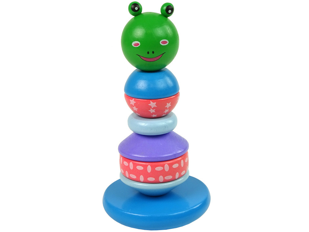 Fából készült oktatási piramis béka zöld egyensúlyozó torony