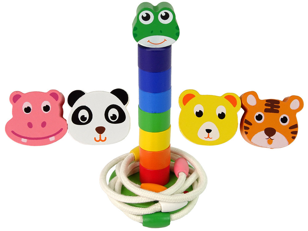 Fából készült piramis oktatási karakterlánc puzzle állatok