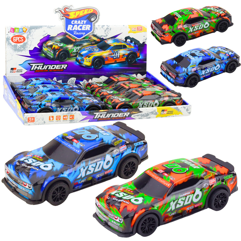 XS06 VERSENYAUTÓ SÚROLÓDÓS HAJTÁSÚ FÉNYEK ÉS HANGOK Az XS06 versenyautó egy dinamikus és lenyűgöző játék, amelyet a gyors vezetést, a versenyzést és a színes, sportjárműveket kedvelő gyerekek számára készítettek. A játékot izgalmas játékra tervezték, amely nemcsak szórakozást nyújt, hanem támogatja a gyermek koordinációjának és képzelőerejének fejlődését is. Az autó súrlódós meghajtással van felszerelve, amelynek köszönhetően tolásra előre mozog, utánozva egy igazi versenyautó menetét. További előny a gomb megnyomásával aktiválódó fény- és hangeffektusok - az autó világít és valósághű vezetési hangokat ad ki, ami még lebilincselőbbé teszi a játékot. Az autó két színváltozatban kapható - narancssárga zöld elemekkel és kék, dinamikus karosszériamintával, amelyet a rallyautók ihlettek. Kompakt méretének köszönhetően tökéletes otthoni játékra, tartós konstrukciójának köszönhetően pedig még az intenzív versenyeket is túléli. Nagyszerű ajándékötlet minden kis autórajongónak. A gyűjtőcsomag 6 járművet tartalmaz. Külön kapható. SPECIFIKÁCIÓ: Autó méretei: 19,5 x 9 x 5,5 cm Szín: narancssárga, kék Tápegység: 3 x AG13 (tartozék) Gyűjtőcsomag méretei: 40 x 27 x 7 cm Funkciók: dörzshajtás, fényeffektek, hangeffektek A SZETT TARTALMA: Versenyautó 3 x AG13 elem