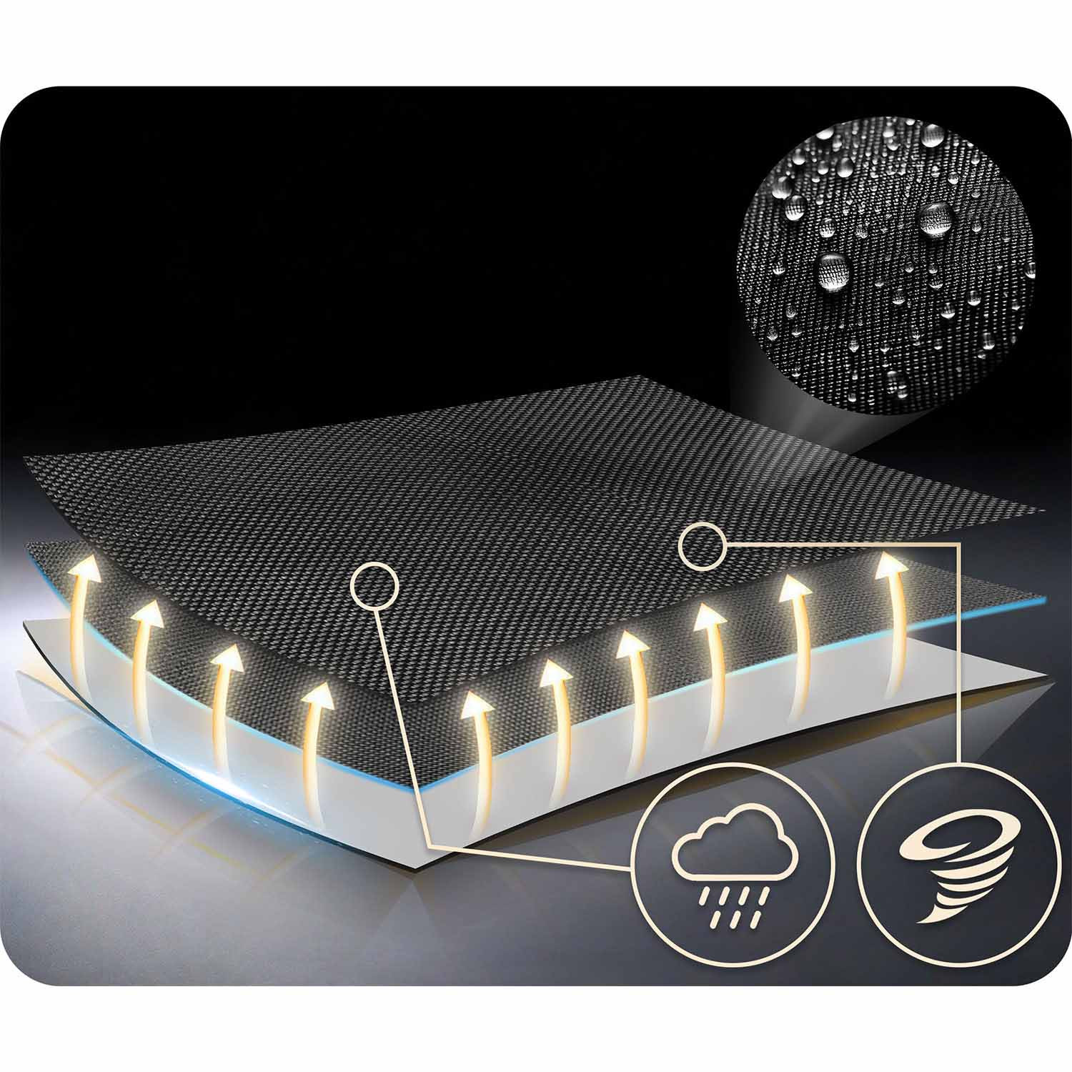 Az Oxford 600D poliészter, amelyből az ülés készült, vízálló és könnyen tisztítható.