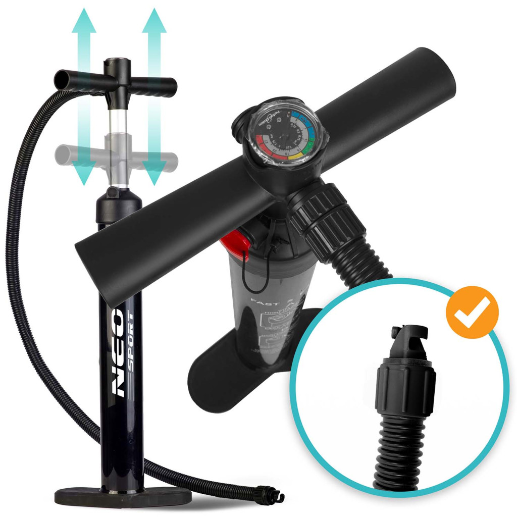 ✅ Kétirányú felfújás – levegőt pumpál a dugattyú megnyomásakor és felemelésekor is – gyorsabban fújja fel a táblát.