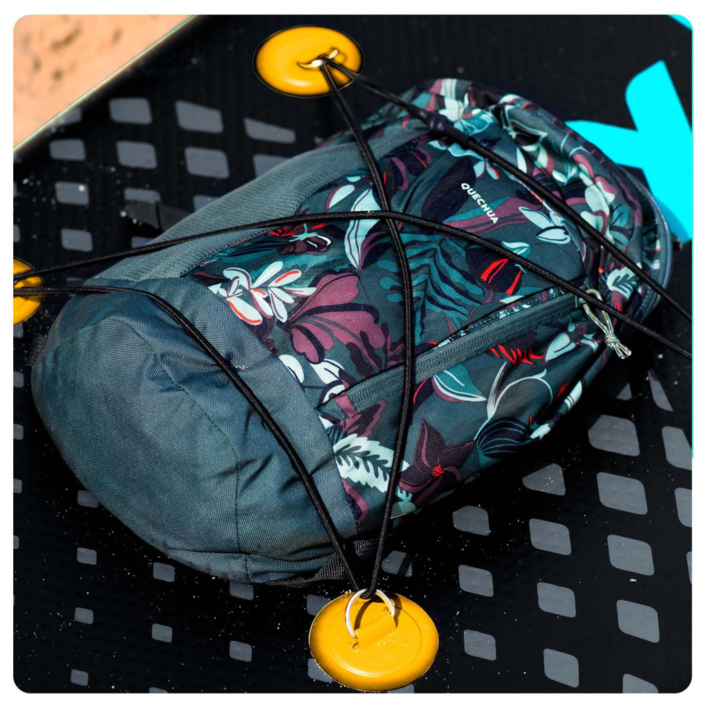 Hátizsák, pulóver, ital? Dobd a gumiszalag alá, és menj! A deszka elején található rugalmas háló kényelmes tárolást biztosít a felszerelés számára.