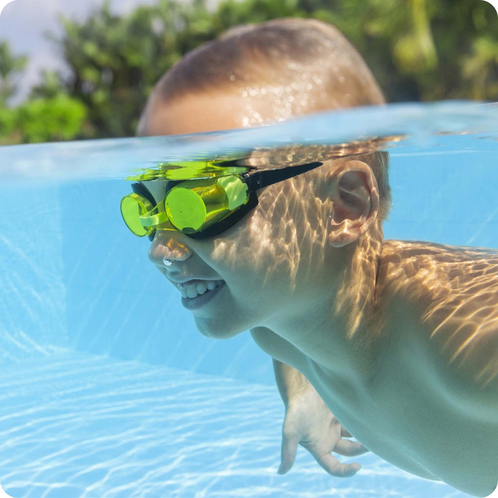 Úszószemüveg BESTWAY 21005-06 Az úszószemüveget értékelni fogják azok az emberek, akik szeretnek a vízi környezet megfigyelésére összpontosítani. A bemutatott lencsemodell ellenáll az UV sugárzásnak, ami befolyásolja a szemüveg használatának kényelmét. A termék igényeihez igazításához beállíthatja a szilikon pántot. Főbb jellemzők: alkalmazkodnak az archoz nem tartalmaznak latexet UV álló Műszaki adatok: Szín: fekete és sárga Méret: gyerekek/fiatalok Lencsék: Hipoallergén Szíj: szilikon Ajánlott életkor: 7 éves kortól