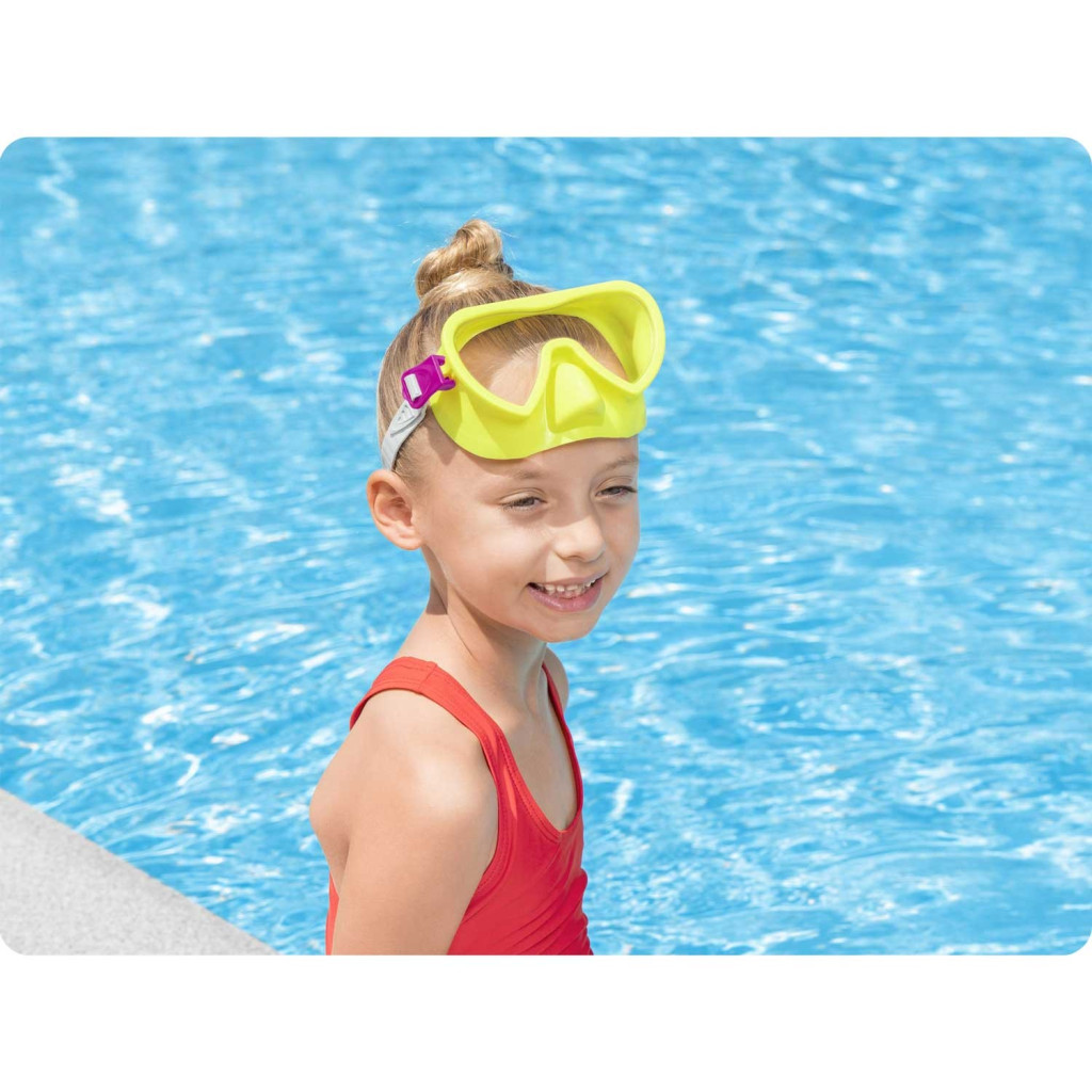 BÚVÁRMASZK BESTWAY 22057-03 Bestway búvármaszk. Most már annyit merülhet és szórakozhat a vízben, amennyit csak akar! Az úszómaszk polikarbonát lencsékkel rendelkezik Széles látószöget biztosít, így nem marad le a víz alatti világ egyetlen eleméről sem! Ezenkívül tökéletesen alkalmazkodik az arc formájához, megakadályozva a vízszivárgást. Az állítható pánt segít a helyén tartani a maszkot. Főbb jellemzők: univerzális méret alkalmazkodik az archoz latex mentes Műszaki adatok: Szilikon szíj Polikarbonát lencse UV-védő bevonattal Súlya 0,26 kg