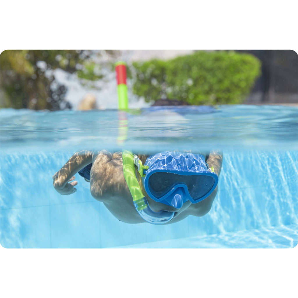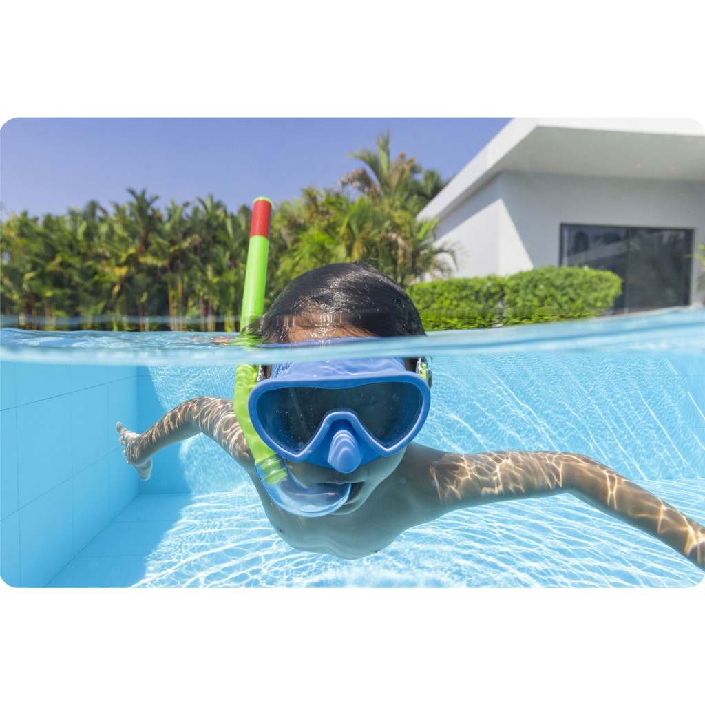 BÚVÁRKÉSZLET TUBE + MASZK BESTWAY 24036-01 Bestway ifjúsági búvárkészlet. A Bestway snorkeling készlet mérete biztosítja, hogy sikeres, izgalmakkal teli nyara legyen. Most már kedvedre merülhetsz és élvezheted a vízi szórakozást! A készletben található úszómaszk polikarbonát lencsékkel rendelkezik. Széles látószöget biztosít, így nem marad le a víz alatti világ egyetlen eleméről sem! Ezenkívül tökéletesen alkalmazkodik az arc formájához, megakadályozva a víz szivárgását. Az állítható pánt segít a maszk a helyén tartásában. A készlet tartalmaz egy csövet is, amelyen keresztül a vízben úszva lélegezhetsz. A szilikon fúvóka alkalmazkodik a száj formájához, és egy speciális burkolat akadályozza meg a víz bejutását. Főbb jellemzők: egy méret mindenkinek maszk és tubus mellékelve alkalmazkodik az archoz kényelmes csőszopóka latex mentes Műszaki adatok: Szilikon szíj Polikarbonát lencse UV-védő bevonattal Súlya 0,20 kg