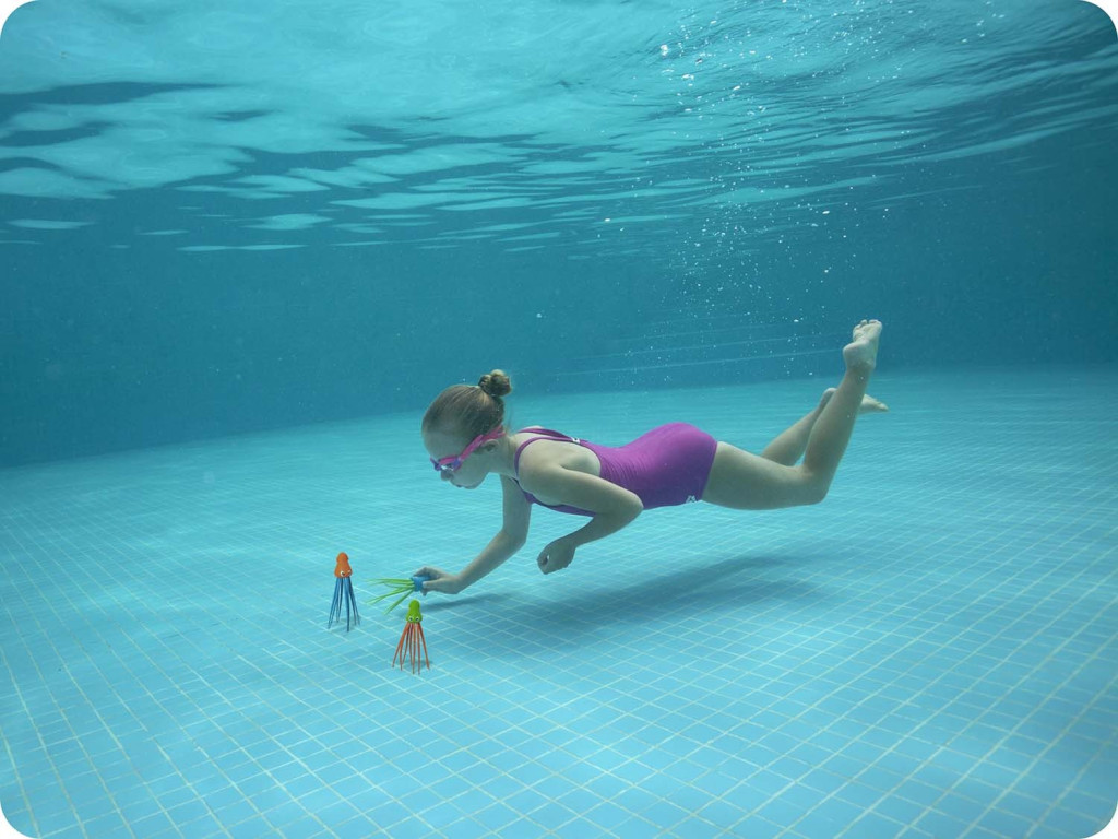 Víz alatti polip készlet búvárkodás megtanulásához A Bestway víz alatti polipok rendkívül hasznos játékok, amelyekkel megismertetheti gyermekét a vízzel, miközben úszni tanul. Különféle oktatási és fizikai tevékenységekhez is használhatók. Rugalmas, biztonságos anyagból készült - tökéletes az úszástanulás első szakaszaihoz. És hogyan működnek? A játékoknak van egy súlya, ami miatt a vízbe dobva lesüllyednek az aljára. A résztvevők feladata a pálcikák kihalászása. Főbb jellemzők: 3 darab egy készletben szép alakú színes polipok lesüllyednek az aljára függőleges helyzetben állnak