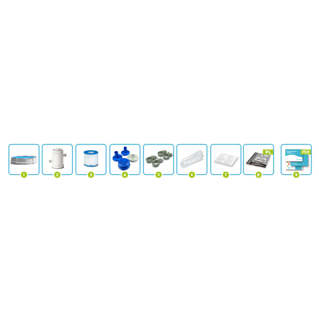 Prism Frame medence 305 x 76 cm Szivattyú mellékelve! INTEX 26702 Készülj a forró nyárra? A bemutatott INTEX uszoda megvásárlásával biztos lehet benne, hogy a termék új, eredeti és biztonságos A medence könnyen összeszerelhető. Néhány pillanat alatt elkészítheti saját kezűleg, szerszám nélkül. Kész készlet teljes felszereléssel? nem kell minden elemet magának keresnie. A készlet tartalma: Keretes medence 305 x 76 cm Szűrőszivattyú Szivattyúszűrő Szivattyúszűrők Szivattyú bilincsek Szivattyútömlők Felhasználói kézikönyv Javítsa ki a javítást Az útmutató letölthető az aukción VÁSÁROLJON EGY JOGOSULT KERESKEDELŐTŐL Nyersz: garanciális és jótállás utáni szerviz, hozzáférés a tartozékok legszélesebb választékához, szakképzett személyzet segítsége, információk és bizonyított használati tanácsok, mindig új és kiváló minőségű termékek 15 év tapasztalat a piacon! ? Több mint 2 millió ügyfelet szolgáltak ki? ez azt jelenti, hogy statisztikailag legalább egy szomszédja vett tőlünk kerti medencét vagy medencetartozékokat. A legmagasabb minőségi kidolgozás Tartós 3 rétegű PVC anyag Nylon hálós megerősítés a rétegek között Szúrásálló bevonat A belső tér fehér és kék mozaikot imitál A medence 3 gyors lépésben készen áll: Bontsa ki a héjat, Szerelje össze a keretet - szerszám nélkül Öntsön vizet – kész! Most egy ilyen nagy medence kibontása eltart néhány pillanatig Műszaki adatok: Úszómedence: Medence méretei 305 x 76 cm Medence súlya 19,5 kg Javasolt vízfeltöltés 90% Űrtartalom 4485 liter Szivattyú: Kapacitása 1250 liter/óra Tápellátás 220 - 240 V Szűrő típusa: H típusú Legyen ez a nyár tele csodálatos élményekkel! ?
