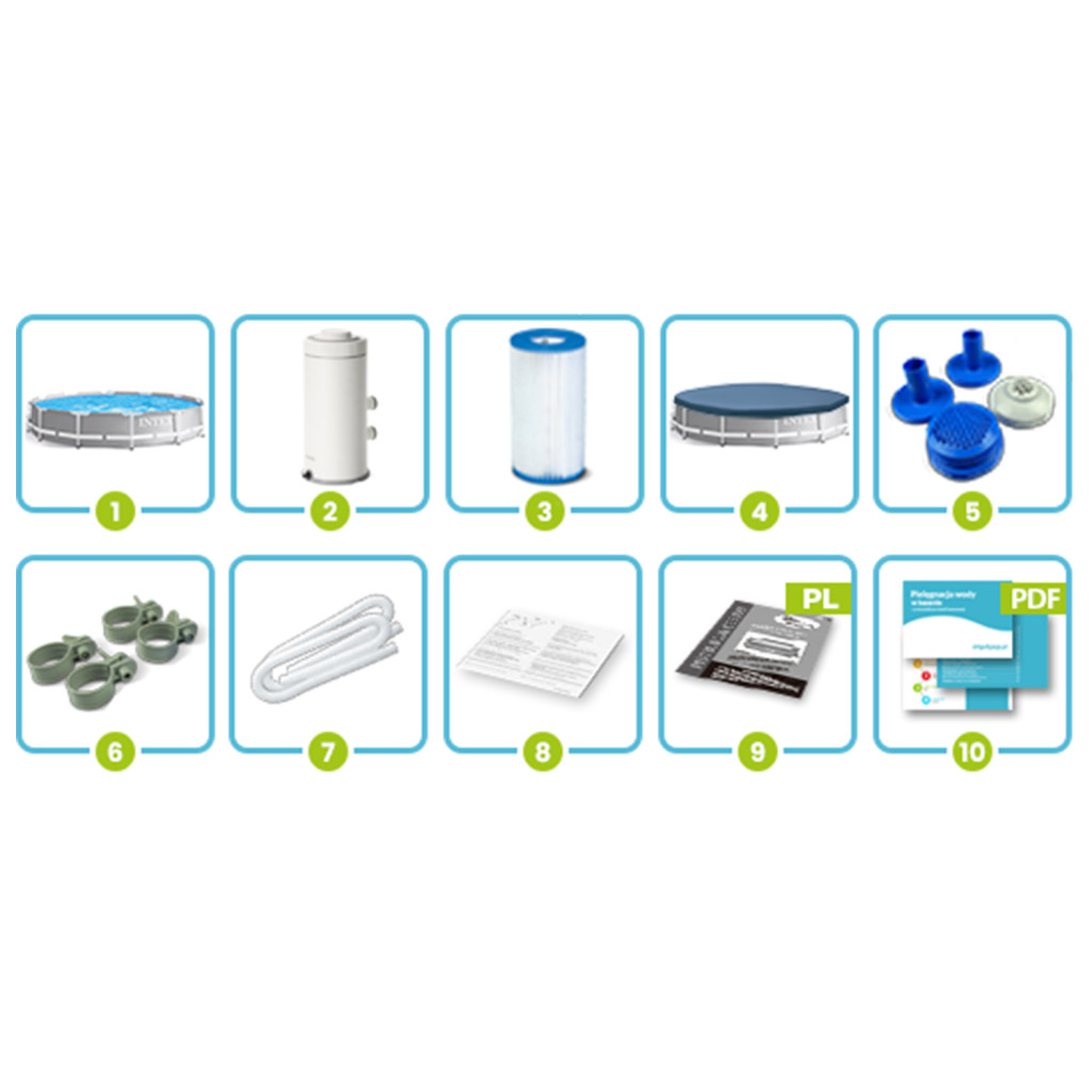 Keret medence 366 x 76 cm 10 az 1-ben készlet INTEX 26712 Tökéletes a kertjébe Ha olyan medencére van szüksége, ahol hűsölhet a forró napokon - ez a tökéletes választás az Ön számára! Kész készlet felszereléssel – nem kell minden elemet magadnak keresned. Ha INTEX medencét vásárol speciális kiegészítőkkel, akkor biztos lehet benne, hogy a legjobb minőséget kapja, és minden passzolni fog. A készlet tartalma: Keretes medence 366 x 76 cm Szűrőszivattyú Szivattyúszűrő Medence burkolat Szivattyúszűrők Szivattyú bilincsek Szivattyútömlők Felhasználói kézikönyv Javítsa ki a javítást Az útmutató letölthető az aukción A legmagasabb minőségi kidolgozás Tartós 3 rétegű PVC anyag Nylon hálós megerősítés a rétegek között Szúrásálló bevonat A belső tér fehér és kék mozaikot imitál Borító Megvédi a medence vizét a szennyeződésektől Megakadályozza, hogy gyermekek az Ön engedélye nélkül belépjenek a medencébe Lassítja a víz hőveszteségét Tiszta víz erőfeszítés nélkül A Hydro Aeration technológiának köszönhetően a szivattyú több ezer buborékkal tölti meg a medencét, miközben egyidejűleg oxidálja a vizet. A medence 3 gyors lépésben készen áll: Bontsa ki a héjat, Szerelje össze a keretet - szerszám nélkül Öntsön vizet – kész! Most egy ilyen nagy medence kibontása eltart néhány pillanatig Műszaki adatok Úszómedence Medence méretei: 366 x 76 cm Medence súlya: 24,9 kg Javasolt vízfeltöltés 90% Űrtartalom: 6503 liter Szivattyú Teljesítmény: 2.006 l/h Tápfeszültség: 220 - 240 V Szűrő típusa: A típusú ️️️ Legyen csodálatos élményekkel ez a nyár! ️️️