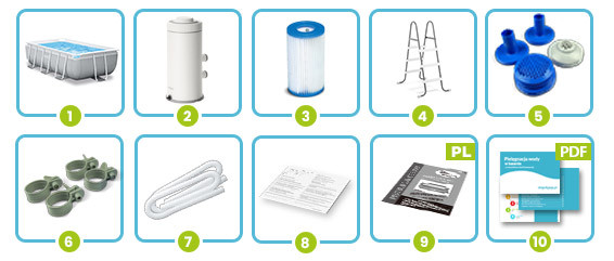 PREMIUM vázas medence 300 x 175 x 80 cm 10 az 1-ben készlet INTEX 26784 Válaszd a tökéletes medencét a kertedbe? Amikor egy INTEX medencét vásárol dedikált kiegészítőkkel, biztos lehet benne, hogy a legjobb minőséget kapja, és minden passzolni fog. A medence könnyen összeszerelhető. Néhány pillanat alatt elkészítheti saját kezűleg, szerszám nélkül. TARTALOM BEÁLLÍTÁSA Keretes medence 300 x 175 x 80 cm Szűrőszivattyú Szivattyúszűrő Fém létra Szivattyúszűrő Szivattyú bilincsek Szivattyútömlők Javítsa ki a javítást Lengyel nyelvű utasítások Útmutató – letölthető az aukción VÁSÁROLJON EGY JOGOSULT KERESKEDELŐTŐL Nyersz: garanciális és jótállás utáni szerviz, hozzáférés a tartozékok legszélesebb választékához, szakképzett személyzet segítsége, információk és bizonyított használati tanácsok, mindig új és kiváló minőségű termékek 15 év tapasztalat a piacon! ? Több mint 2 millió ügyfelet szolgáltak ki? ez azt jelenti, hogy statisztikailag legalább egy szomszédja vett tőlünk kerti medencét vagy medencetartozékokat. Először is: gyermekbiztonság A magassága tökéletesen illeszkedik a medence méretéhez Korrózióálló, megerősített fémkeret Csúszásgátló lépcsők Kényelmes kapaszkodók Másodszor: a legmagasabb minőségi kidolgozás Tartós 3 rétegű PVC anyag Nylon hálós megerősítés a rétegek között Szúrásálló bevonat A belső tér fehér és kék mozaikot imitál Borító Megvédi a medence vizét a szennyeződésektől Megakadályozza, hogy gyermekek az Ön engedélye nélkül belépjenek a medencébe Lassítja a víz hőveszteségét Mat Védi az alját a sérülésektől Védelmet nyújt az ellen, hogy homok és egyéb szennyeződés kerüljön a medencébe Elszigeteli a medencét a talajtól A medence 3 gyors lépésben készen áll: Bontsa ki a héjat, Szerelje össze a keretet - szerszám nélkül Öntsön vizet – kész! Most egy ilyen nagy medence felállítása csak néhány pillanatot vesz igénybe! MŰSZAKI ADATOK Úszómedence A medence méretei 300 x 175 x 80 cm Medence súlya 48,3 kg Javasolt vízfeltöltés 90% Űrtartalma 3539 liter Medence száma: 26784 Szivattyú A szivattyú teljesítménye 2006 liter/óra Szivattyú táp 220-240 V A típusú szűrő Szivattyúszám: 28604 Legyen ez a nyár tele csodálatos élményekkel! ?