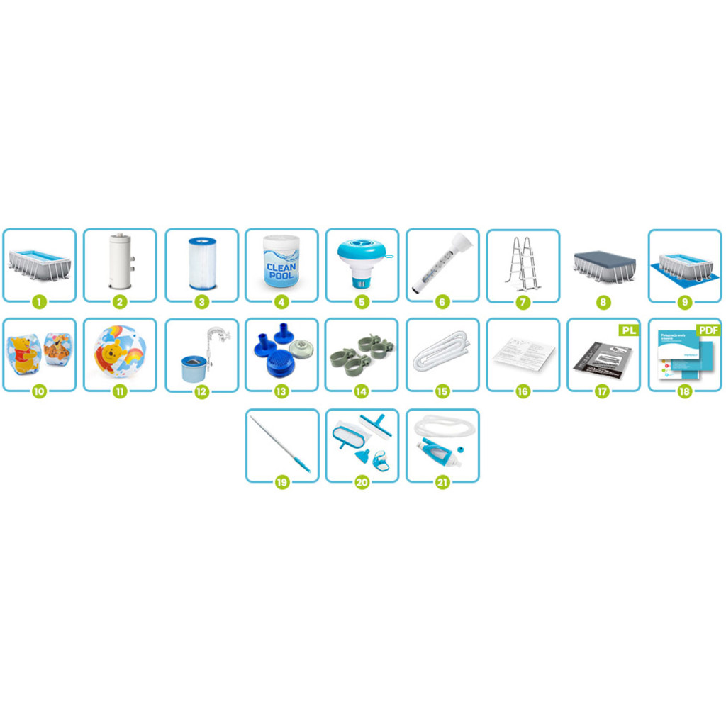 Keretes kerti medence 488 x 244 x 107 cm 21 az 1-ben készlet