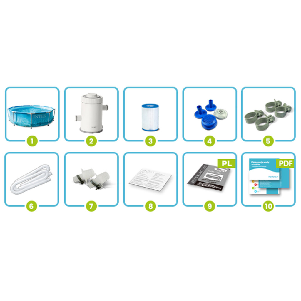 Keretes kerti medence szivattyúval 305 x 76 cm Katalógusszám INTEX ® 28208 HIT Ha egy nagy, megbízható medencére van szüksége, amelyben szabadon úszhat - ez a tökéletes választás az Ön számára! Önt szem előtt tartva, a szükséges felszerelésekkel bővítettük a medencét, amivel hosszú éveken át teljes mértékben élvezheti a medencét Ha a bemutatott uszodát az Intex hivatalos képviselőjétől vásárolja meg, biztos lehet benne, hogy a termék új, eredeti és biztonságos TARTALOM BEÁLLÍTÁSA Keretes medence 305 x 76 cm Szűrőszivattyú Szivattyúszűrő Szivattyúszűrők Szivattyú bilincsek Szivattyútömlők Szivattyú bilincsek Javítsa ki a javítást Lengyel nyelvű utasítások Útmutató – letölthető az aukción A legmagasabb minőségi kidolgozás Tartós 3 rétegű PVC anyag Nylon hálós megerősítés a rétegek között Szúrásálló bevonat A belső tér fehér és kék mozaikot imitál A medence 3 gyors lépésben készen áll: Bontsa ki a héjat, Szerelje össze a keretet - szerszám nélkül Öntsön vizet - kész! Most egy ilyen nagy medence kibontása eltart néhány pillanatig Műszaki adatok Úszómedence Medence méretei: 305 x 76 cm Medence súlya: 19,7 kg Javasolt vízfeltöltés 90% Űrtartalom: 4485 liter Szivattyú Teljesítmény: 1.250 l/h Tápfeszültség: 220 - 240 V Szűrő típusa: H típusú ️️️ Legyen csodálatos élményekkel ez a nyár! ️️️
