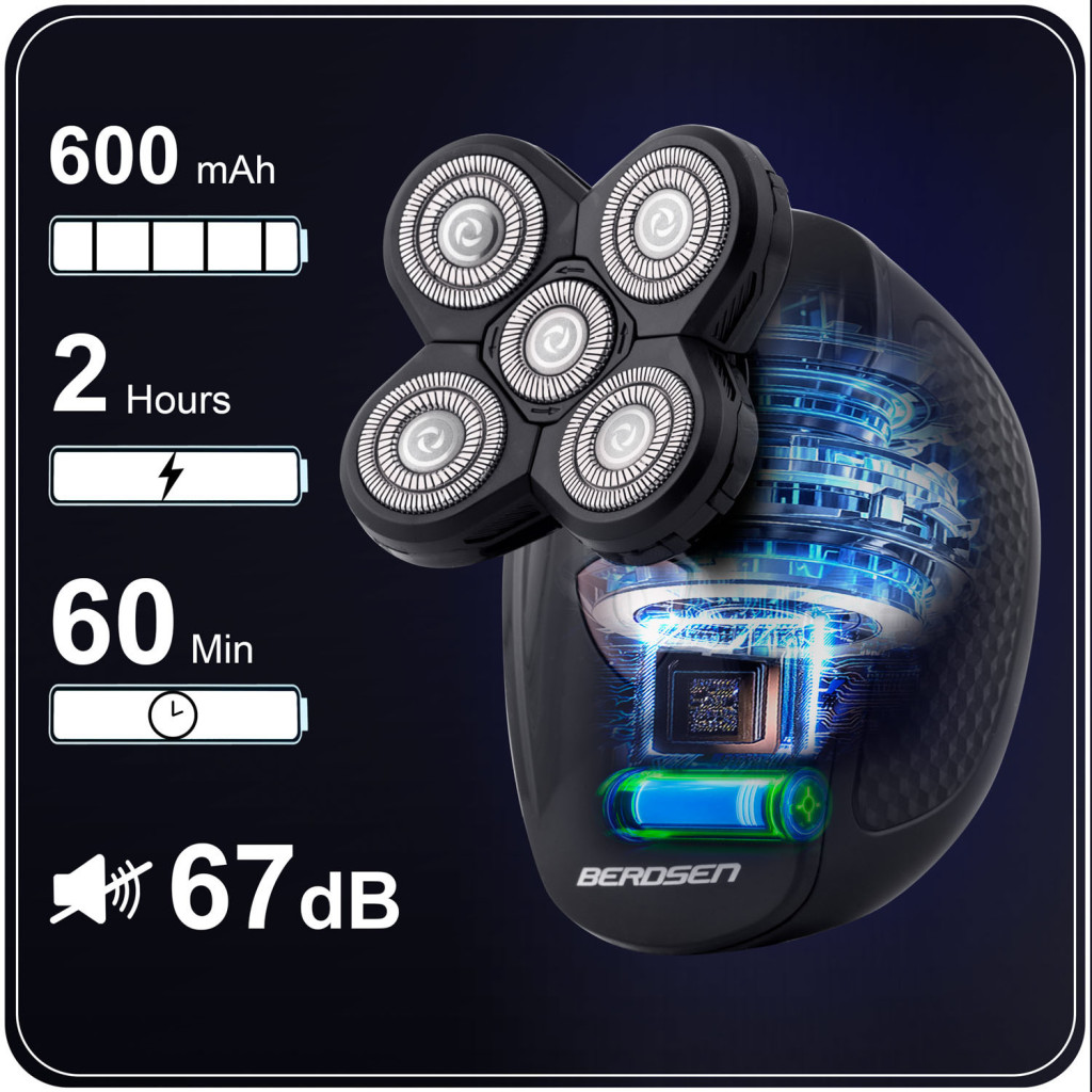 A borotva hihetetlenül éles, kétrétegű, kiváló minőségű acélból készült forgópengékkel rendelkezik, amelyek minden használatnál pontos és sima vágást biztosítanak. Kivételes tartósságának köszönhetően a penge még intenzív használat során sem válik tompavá , ami azt jelenti, hogy a borotva használatra kész marad.