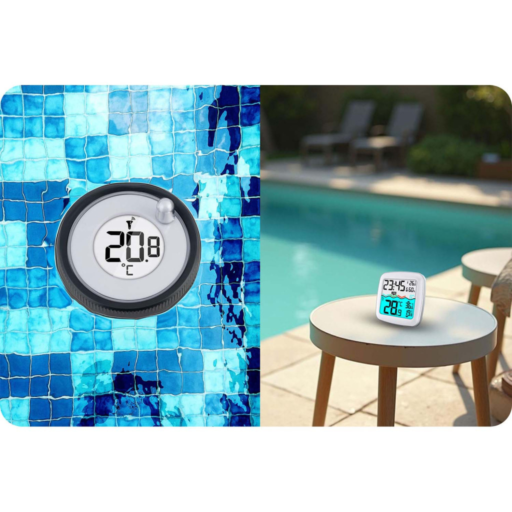 A medenceérzékelővel ellátott állomás pontosan méri a víz, a belső terek és a környezet hőmérsékletét. A LED-es kijelző olvashatóságot biztosít, a kompakt kialakítás pedig bármilyen helyen – a medence mellett vagy otthon – jól működik. A funkcionalitás és a kényelem tökéletes kombinációja!
