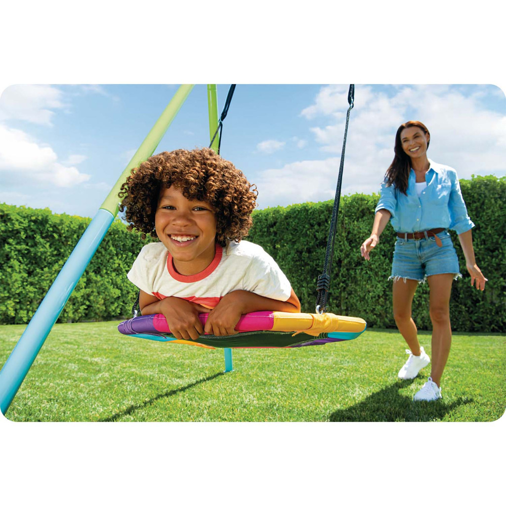 Színes 2 az 1-ben GÓLYA FÉSZEK hinta 235cm x 254cm x 200cm Az új hinták a 6 cm-es csőátmérőjű horganyzott acél lehetőségét használják ki a nagyobb szilárdság és szerkezeti szilárdság érdekében. A gyerekek örülni fognak ennek a hintának. Az Intex a minőségre és a biztonságra egyaránt hangsúlyt fektetve tervezte. A hintát a talajhoz rögzítő speciális horgok biztosítják a stabilitást és a biztonságot. Szórakozás 3-10 éves gyerekeknek. Gólyafészek 50 kg alatti gyermekek számára. A Gólyafészek hintán a gyerekek maximális létszáma: 2 fő. A rugalmas láncos ülésen 1 fő, max 50 kg. Tartós és gyermekbiztos anyagok. Ráadásul a csomagolás egyszerű és funkcionális belső elrendezésének és az áttekinthető összeszerelési útmutatónak köszönhetően a hinta összeszerelése egyszerű és gyors lesz. Állítható kötélmagasság. A színes Gólyafészek a legjobb minőségű anyagokból készült, amelyek hosszú élettartamot és tartósságot biztosítanak. Biztonságos talajra rögzítő rendszer. Állítható magasságú kábelek. Rugalmas ülés plasztiszol bevonatú hintaláncokkal. NAGY KEMÉNYSÉGŰ HORGANYOZOTT ACÉLCSÖVEK A cső alakú föld feletti medencék építésében szerzett tapasztalatok alapján ez a termék rozsdaálló és rendkívül stabil építőanyagokat tartalmaz a nagyobb szilárdság érdekében. A keret porszórt horganyzott acélból készült, teljesen lézerrel hegesztett - az anyag tartósságát szem előtt tartva készült. A hinta méretei: 235 cm x 254 cm x 200 cm A Gólyafészek méretei: átmérője 81cm Gólyafészek 50 kg alatti gyermekek számára. A hintában a gyerekek maximális száma 2 fő. A rugalmas láncos ülésen 1 fő, 50 kg alatti gyerekek. Életkor: 3-10 év A készlet tartalma: egy hinta egy gólyafészek