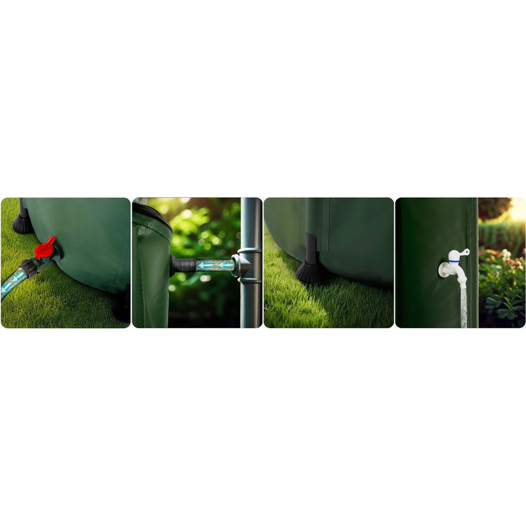 Könnyedén csatlakoztathat egy kerti tömlőt a tartályhoz, amellyel kényelmesen öntözi ágyait, pázsitját vagy növényeit az üvegházban. Ezáltal az esővíz könnyen elérhető az egész kertben, időt és erőfeszítést takarítva meg.