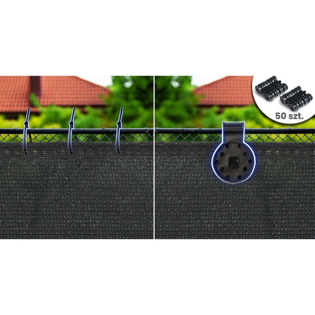 A készletben található professzionális bilincsek (50 db) jelentősen megkönnyítik a háló felszerelését. Ezeknek köszönhetően gyorsan és stabilan rögzítheti a burkolatot a kerítésre, további szerszámok nélkül.